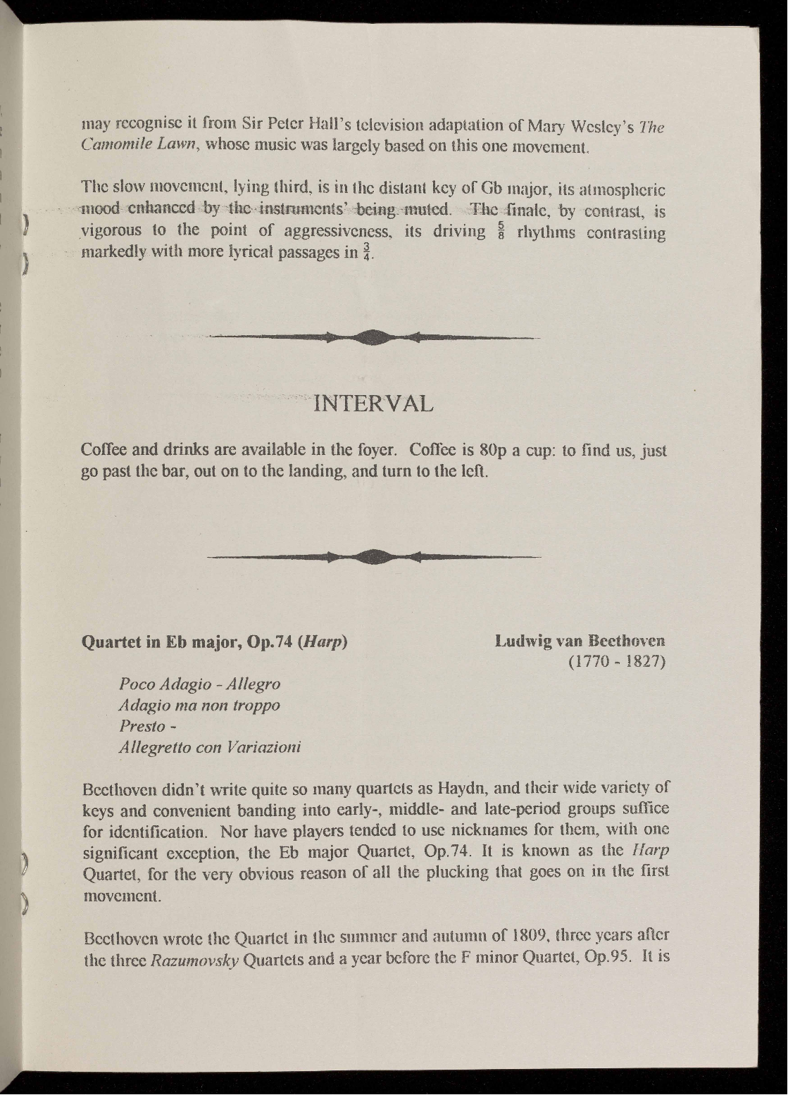 significant exception, the Eb major Quartet, Op.74. It is known as the Harp