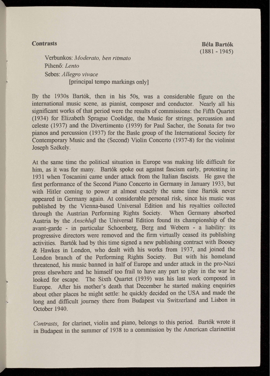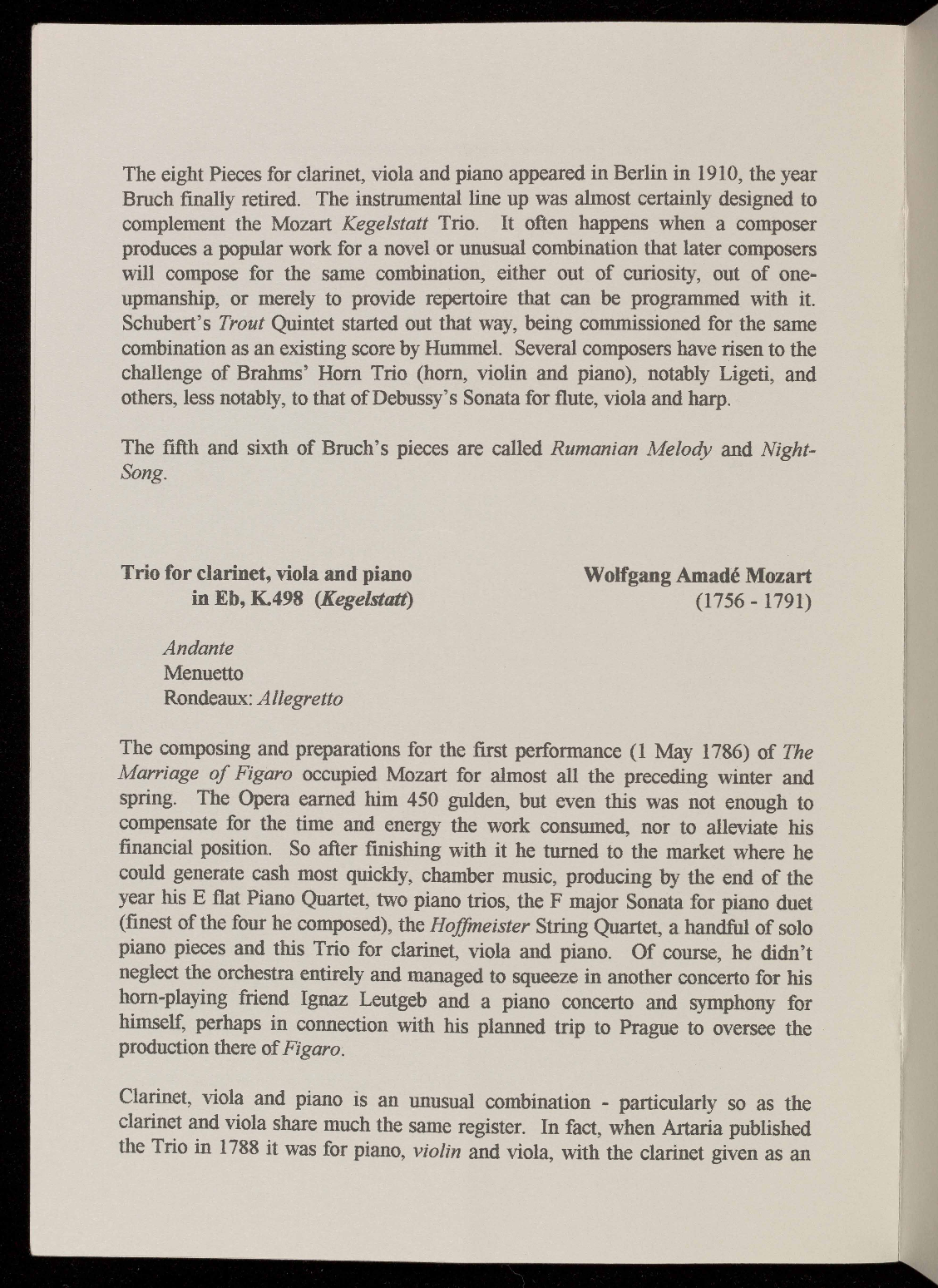 quartet. Instead he composed for the rare and difficult medium of the string trio.
