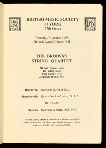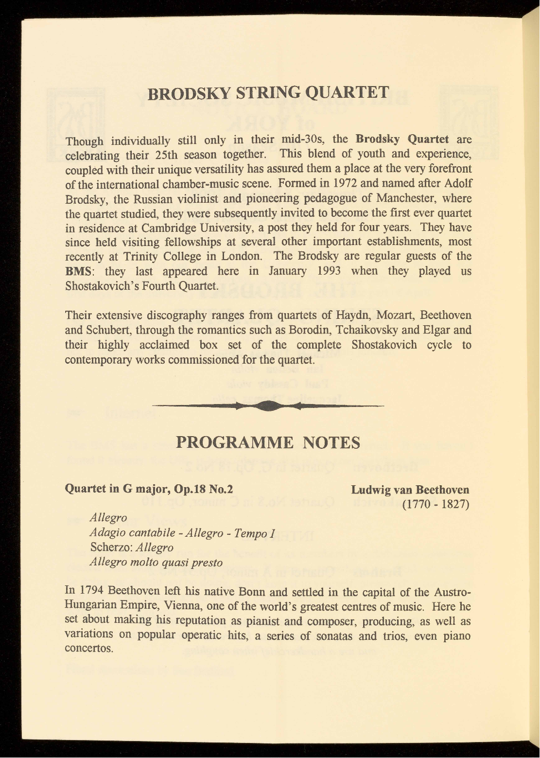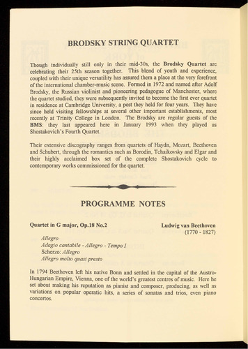 recently at Trinity College in London. The Brodsky are regular guests of the