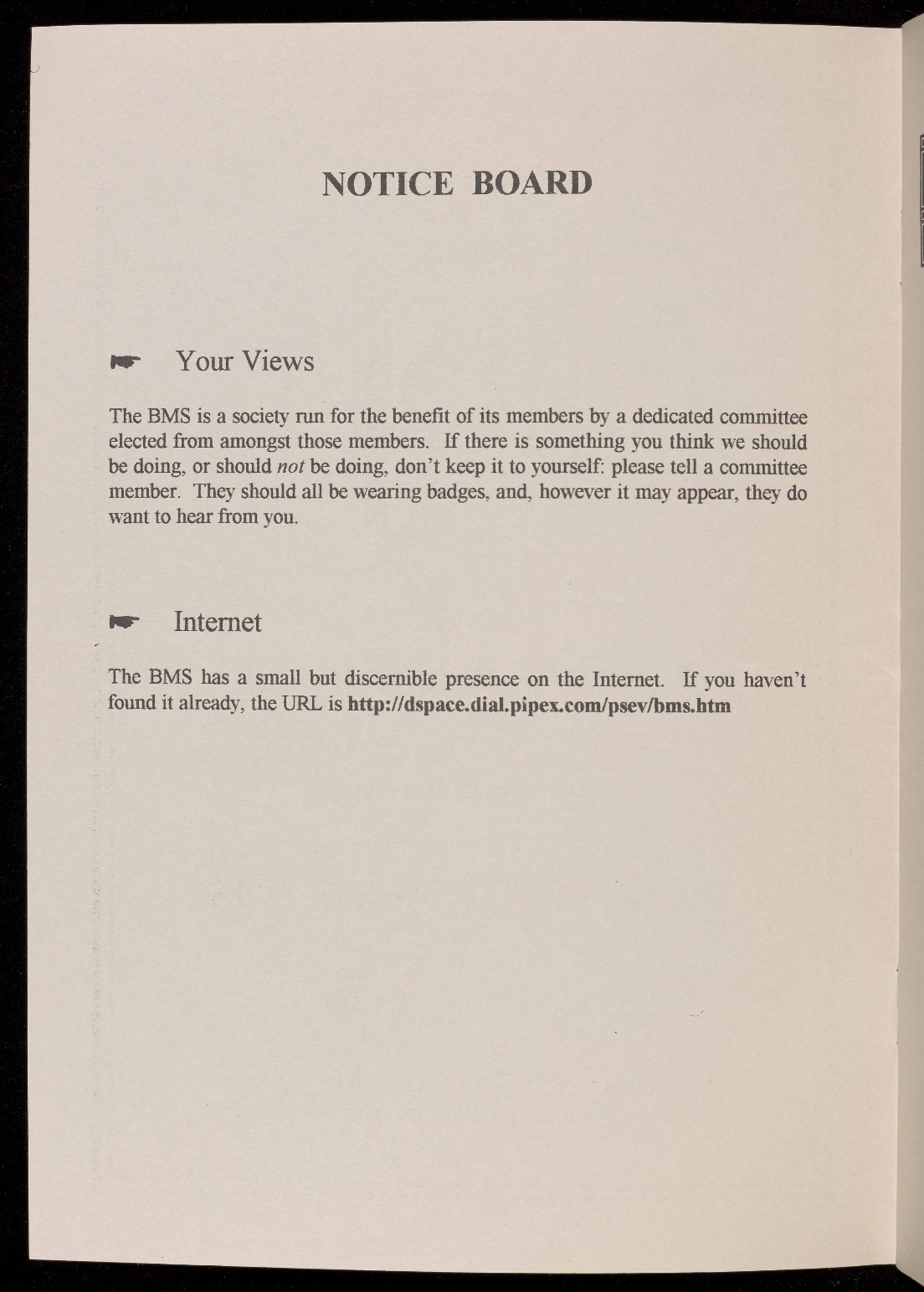 The BMS has a small but discernible presence on the Internet. If you haven't