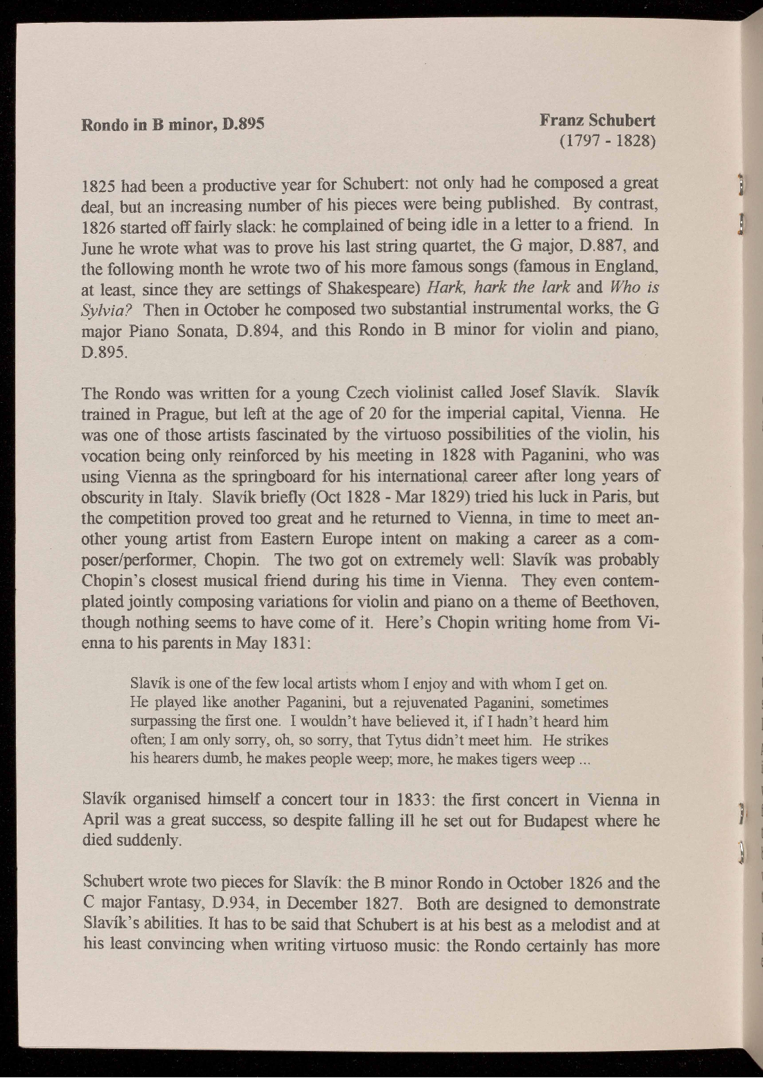and Schubert, through the romantics such as Borodin, Tchaikovsky and Elgar and