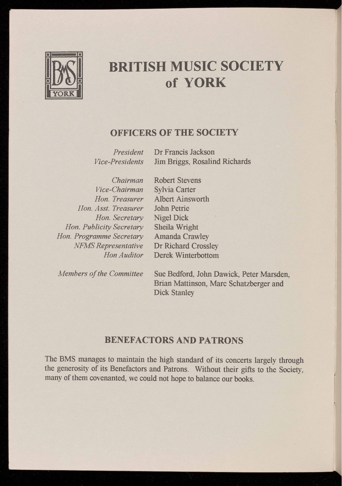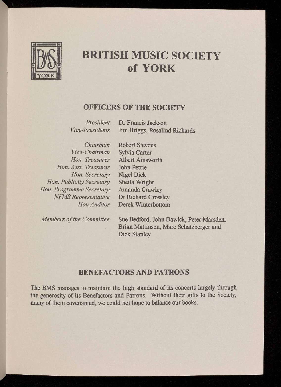 The BMS is a society run for the benefit of its members by a dedicated committee