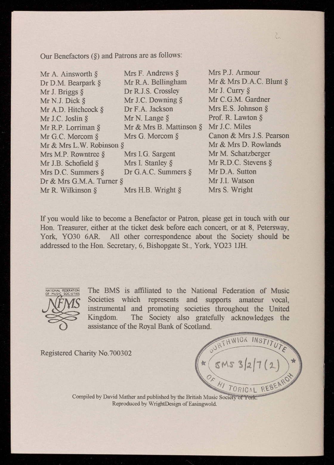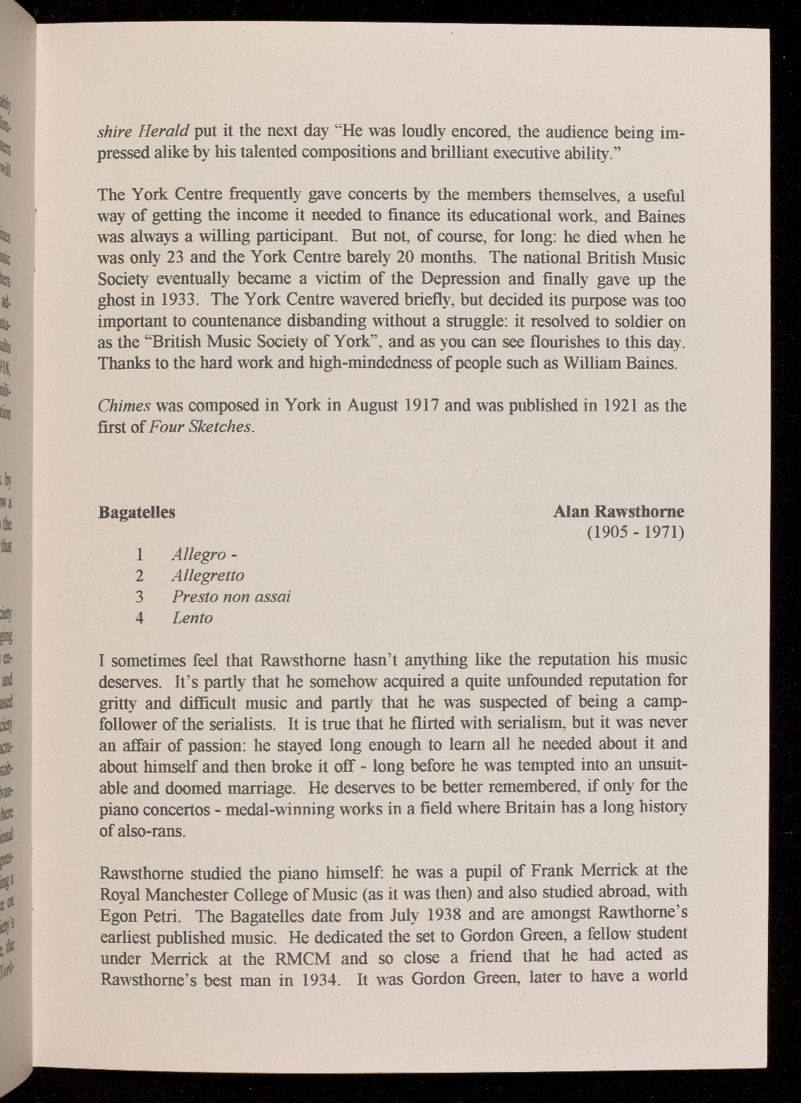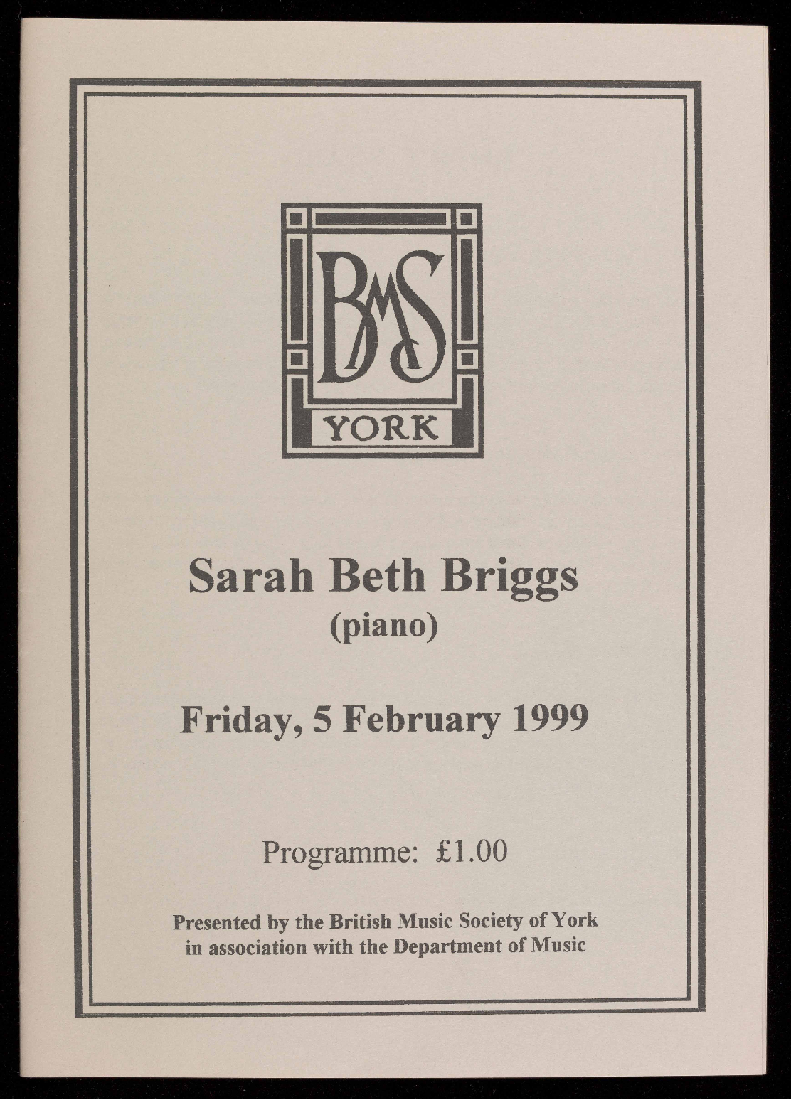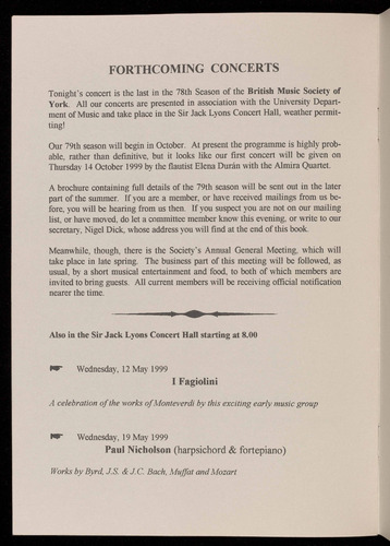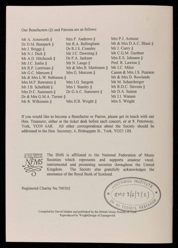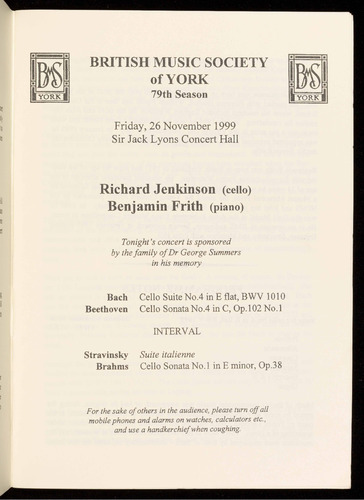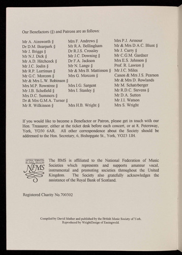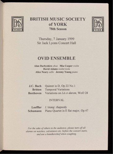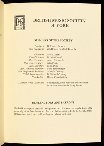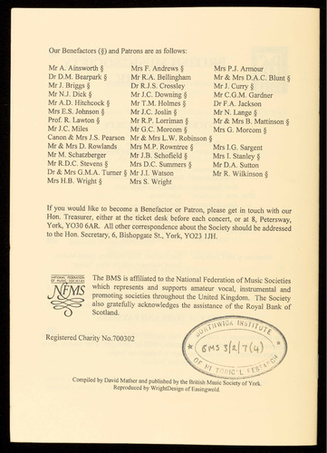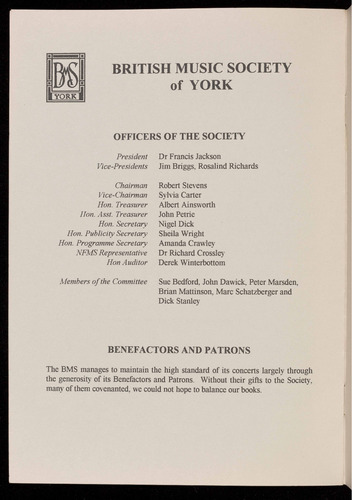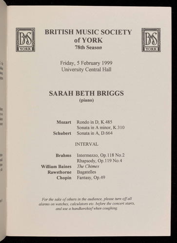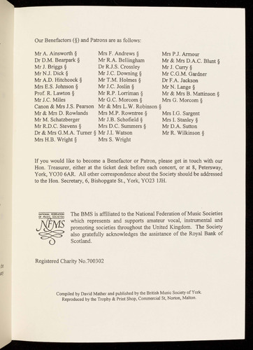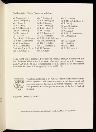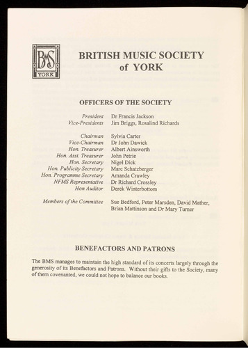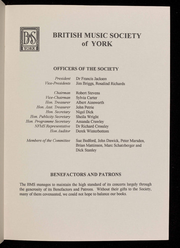 Presented by the British Music Society of York
