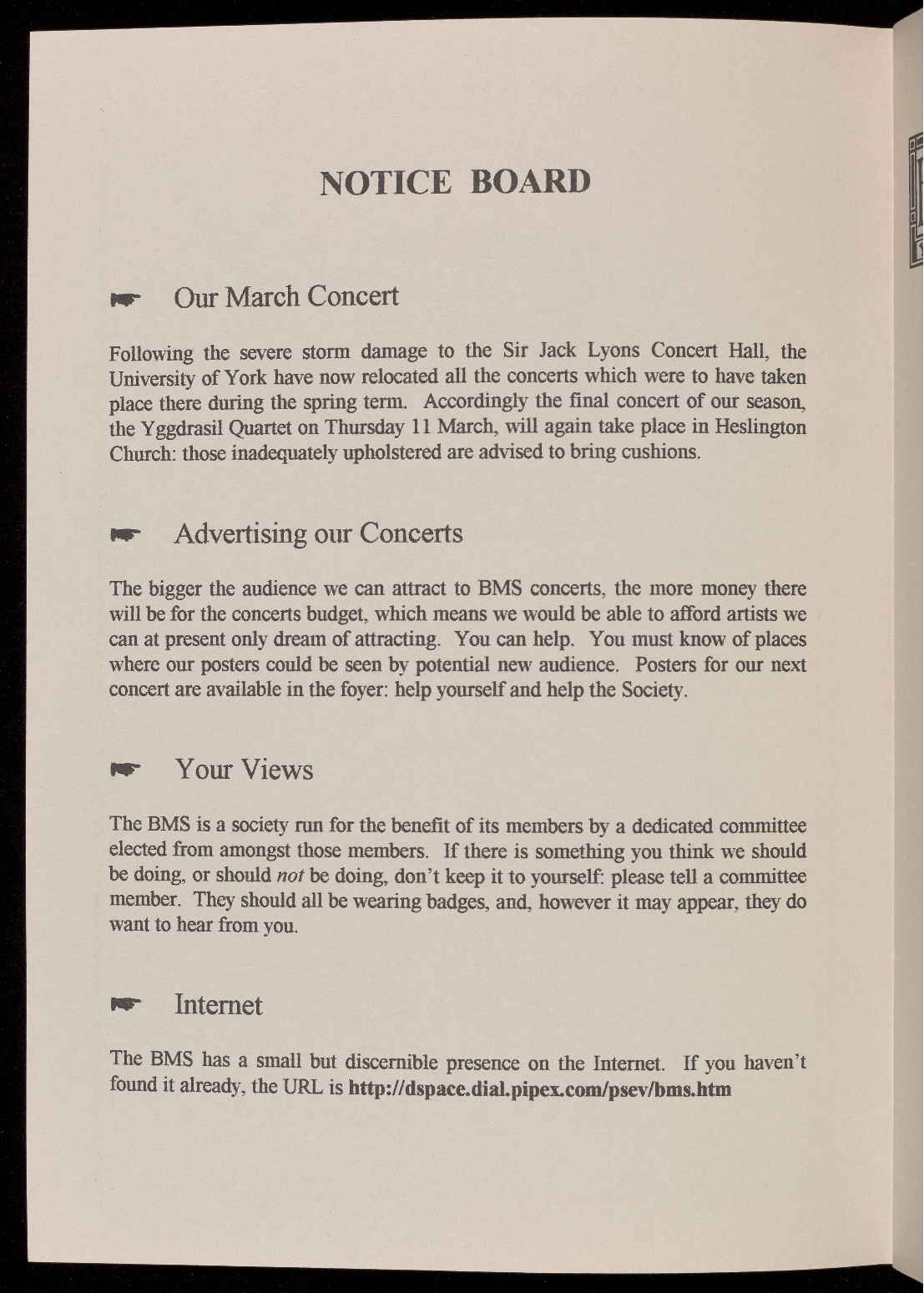 The BMS has a small but discernible presence on the Internet. If you haven't