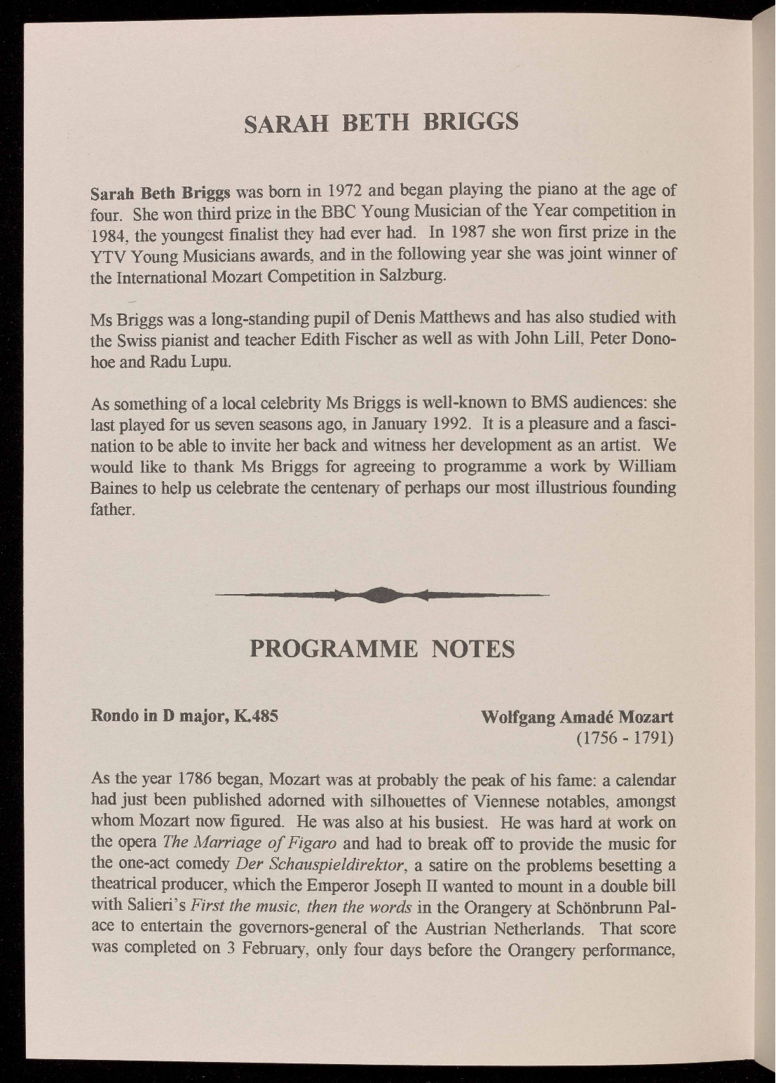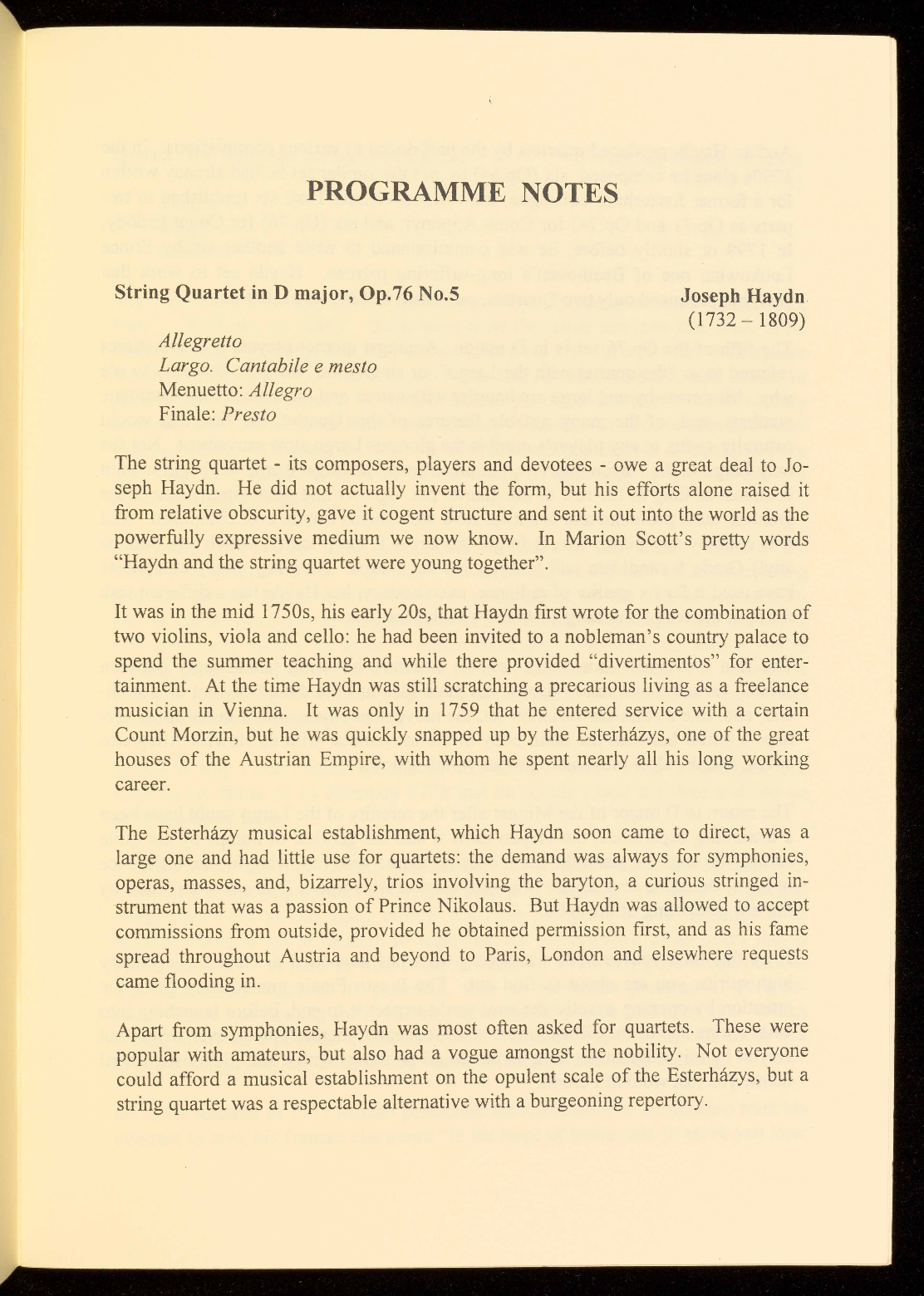 PROGRAMME NOTES