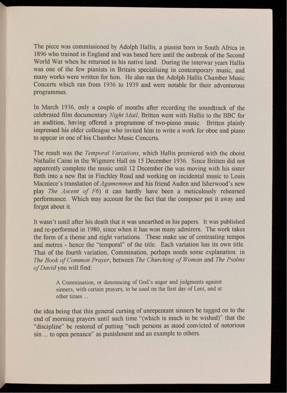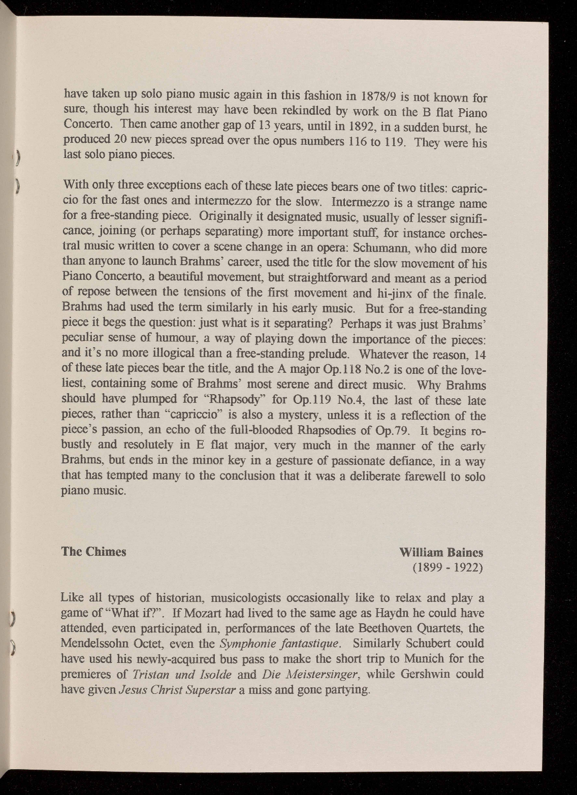 Britten and Richard Rodney Bennett, with piano solos by Mendelssohn and Ireland