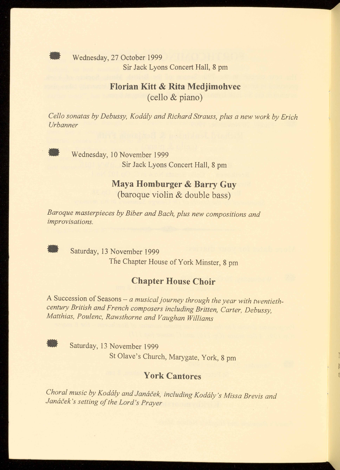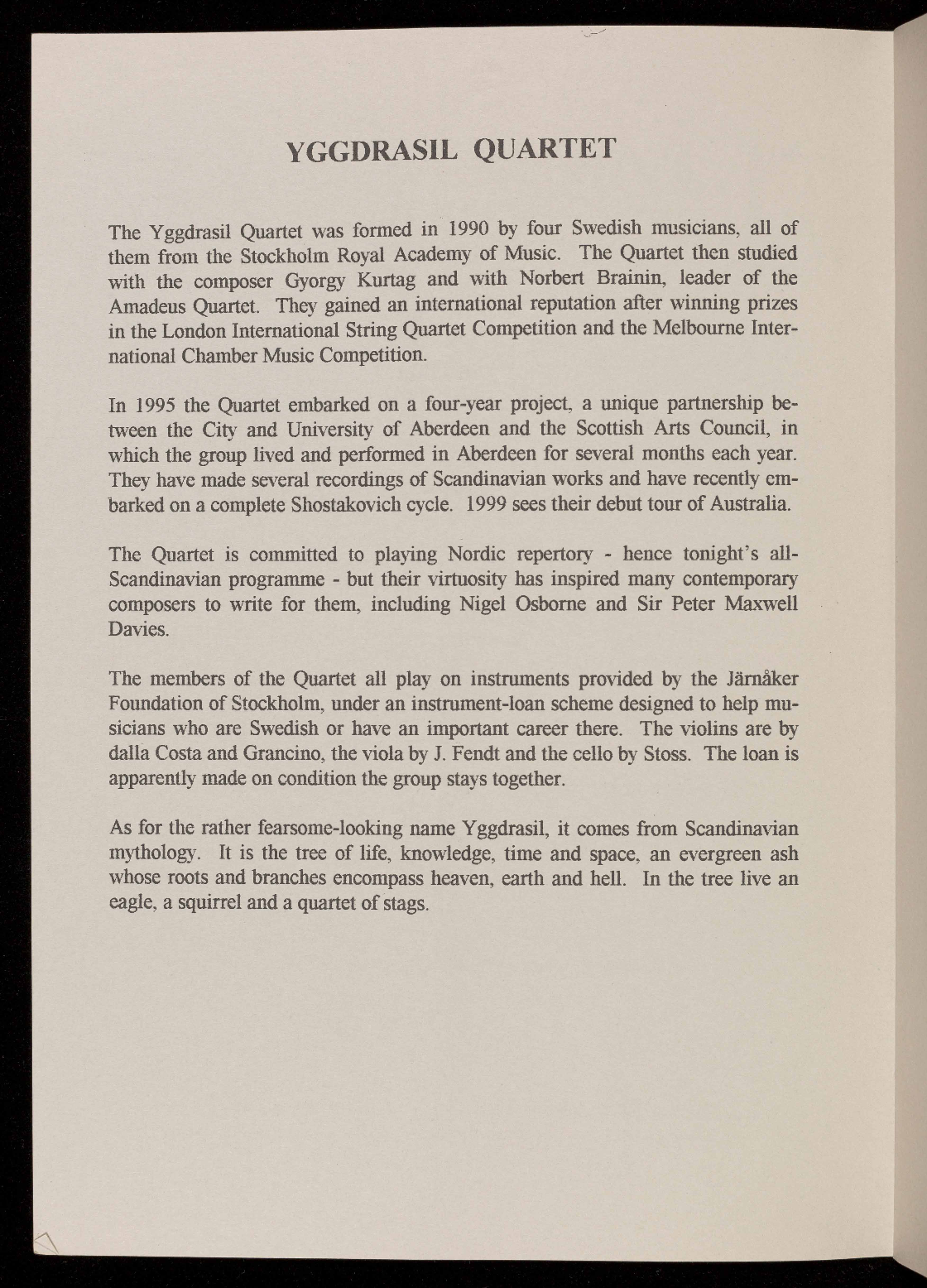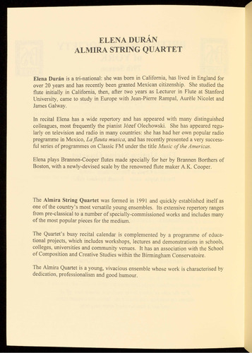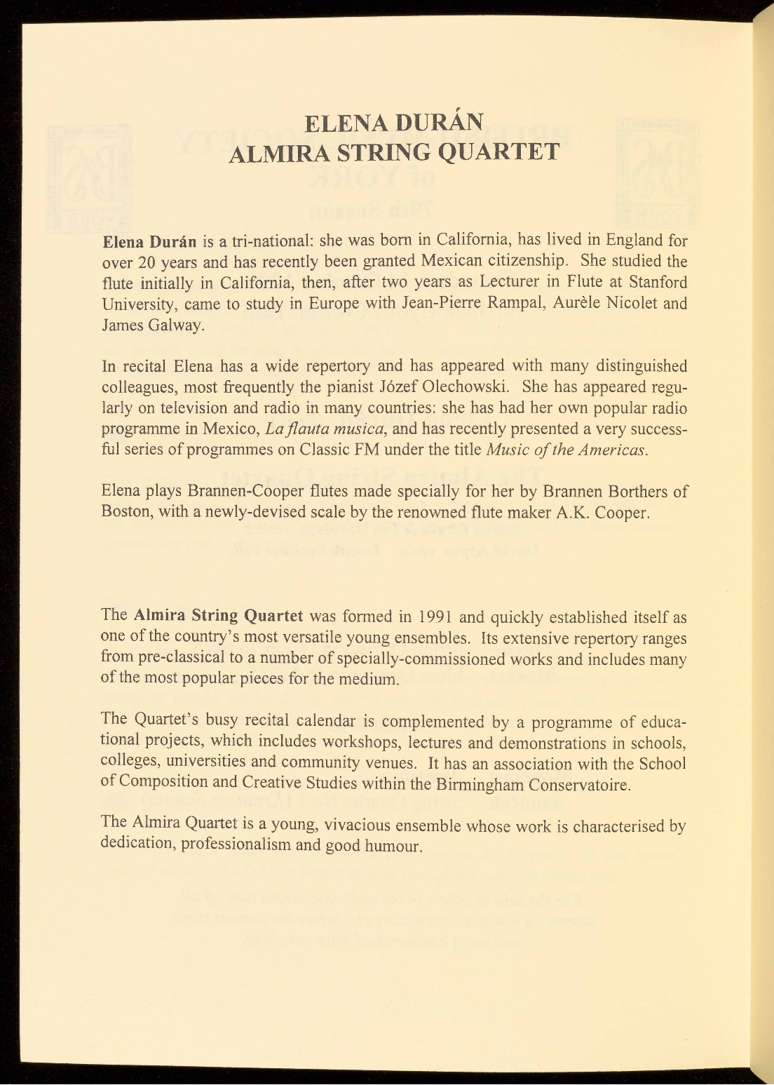 They were ensemble in residence at the 1997 Ryedale Festival, where they gave
