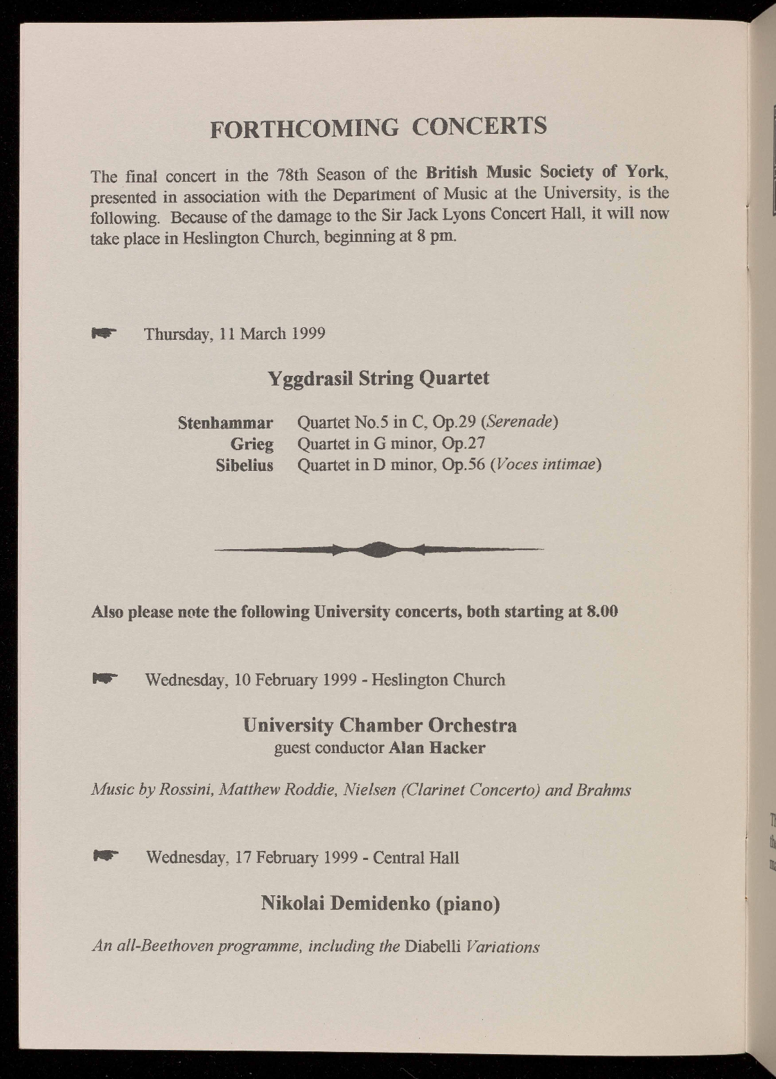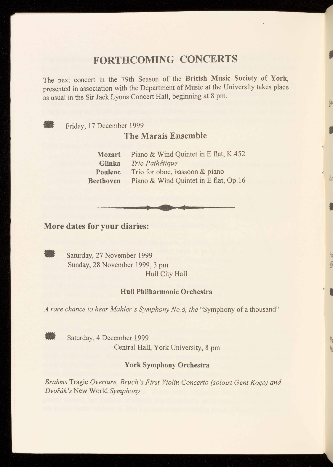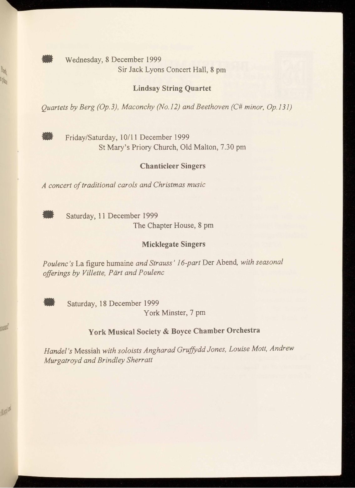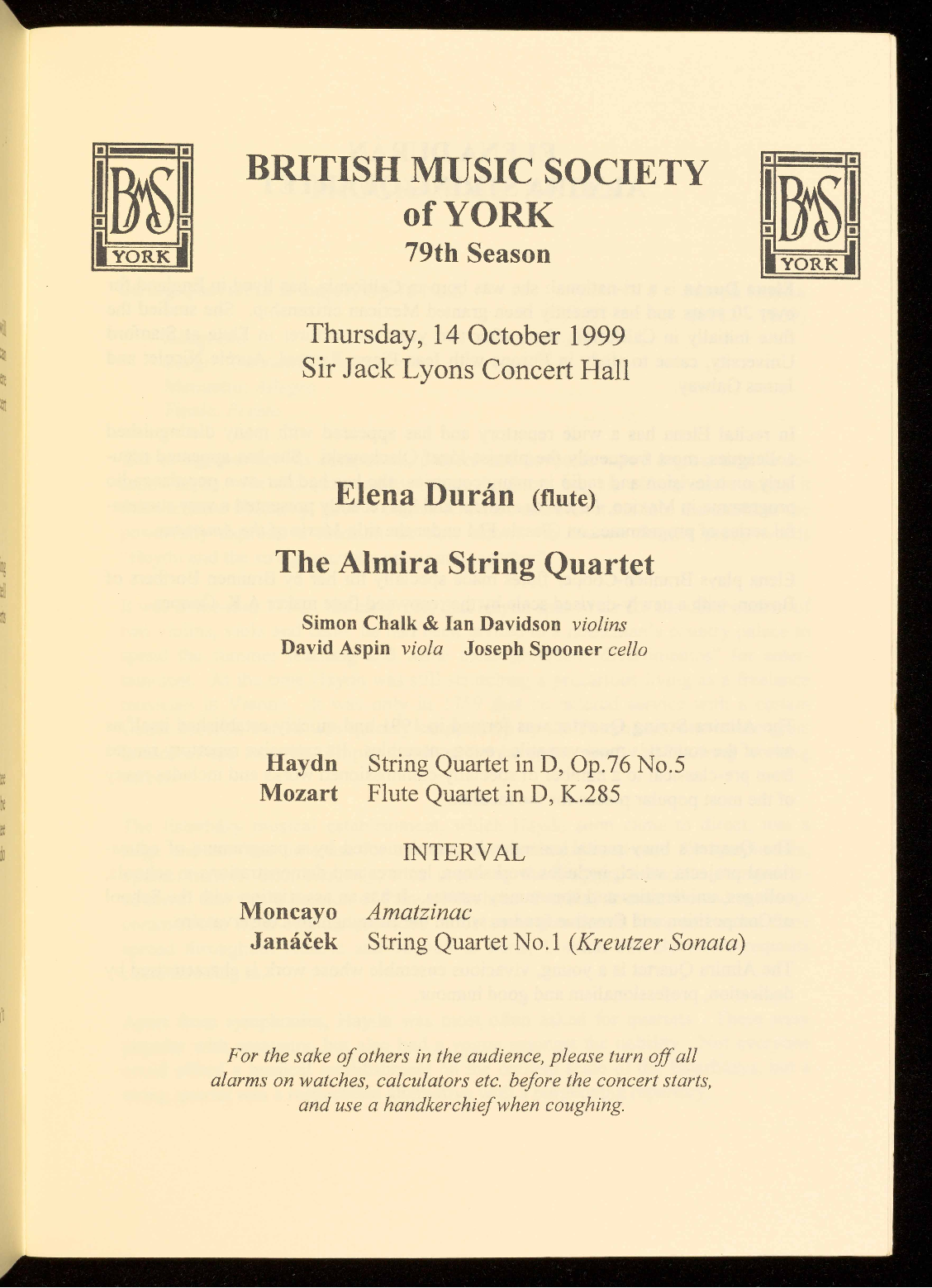 They were ensemble in residence at the 1997 Ryedale Festival, where they gave