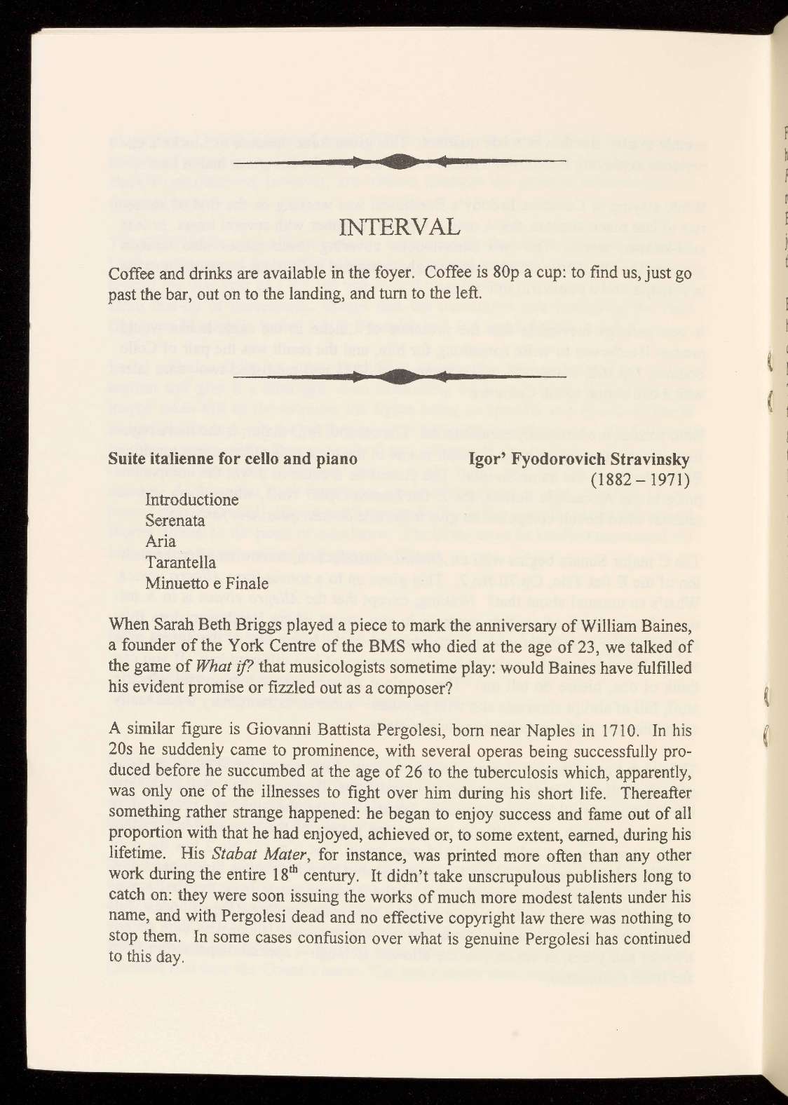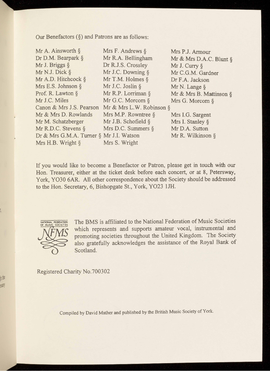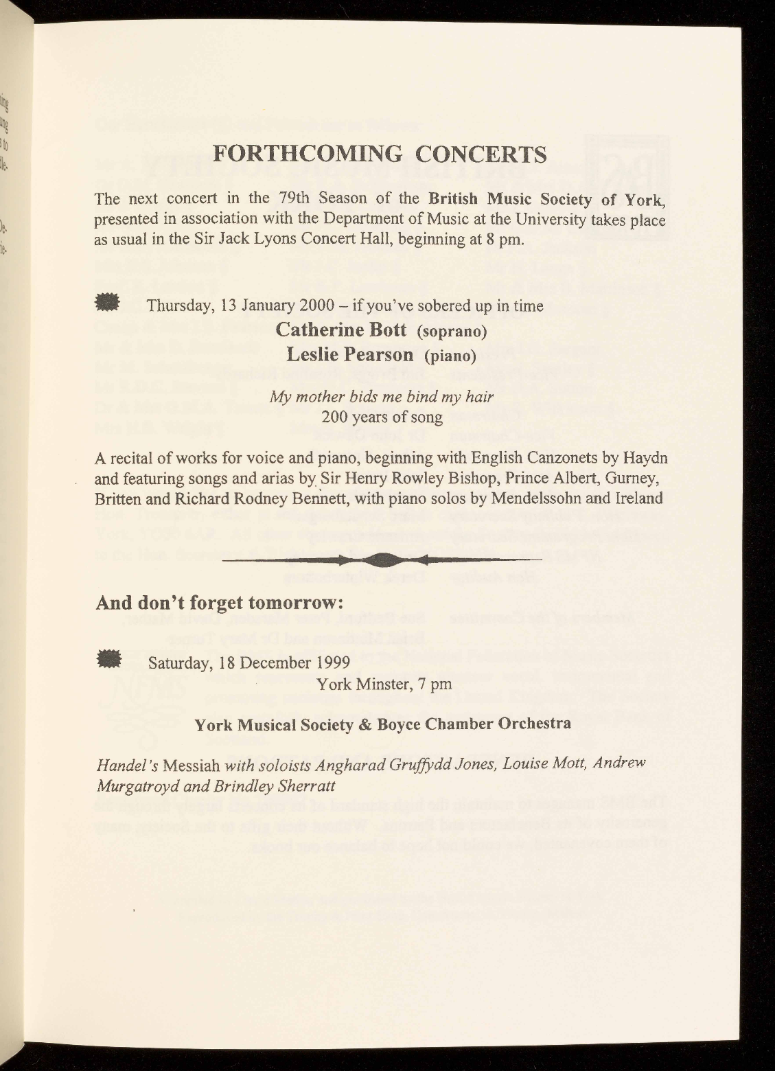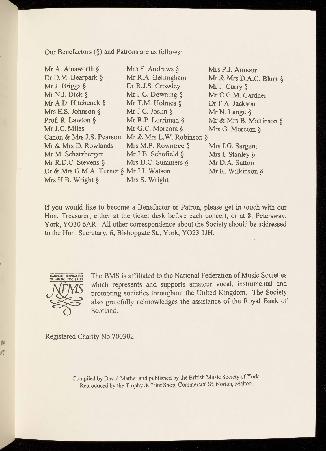 concert are available in the foyer: help yourself and help the Society.