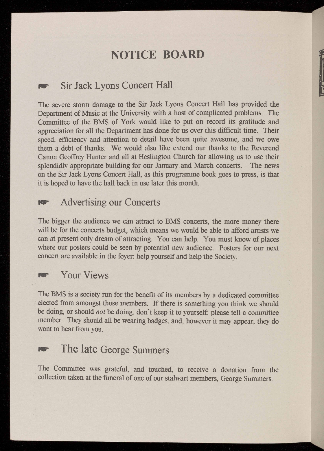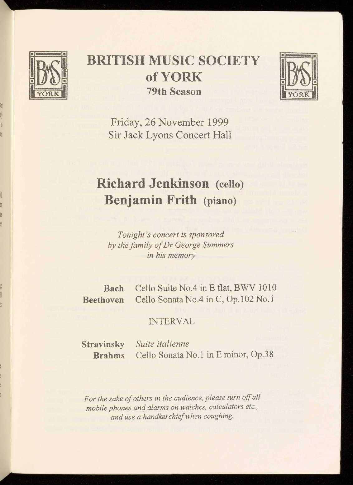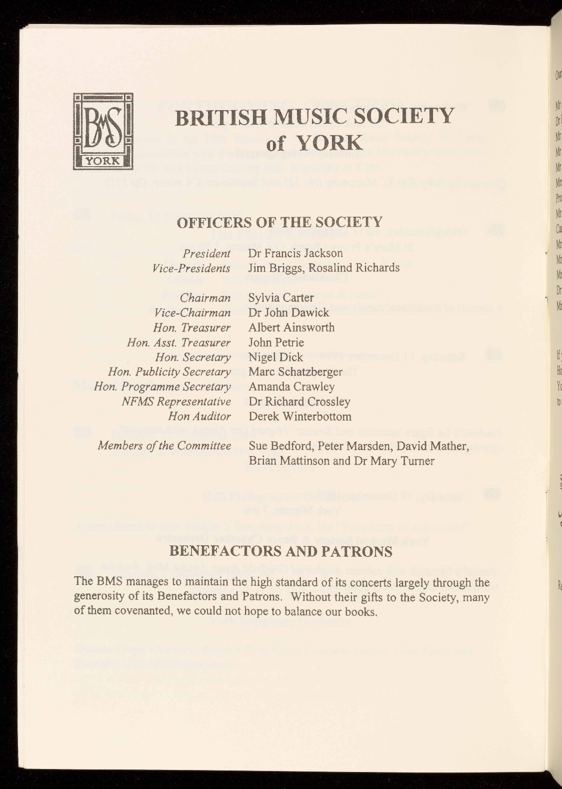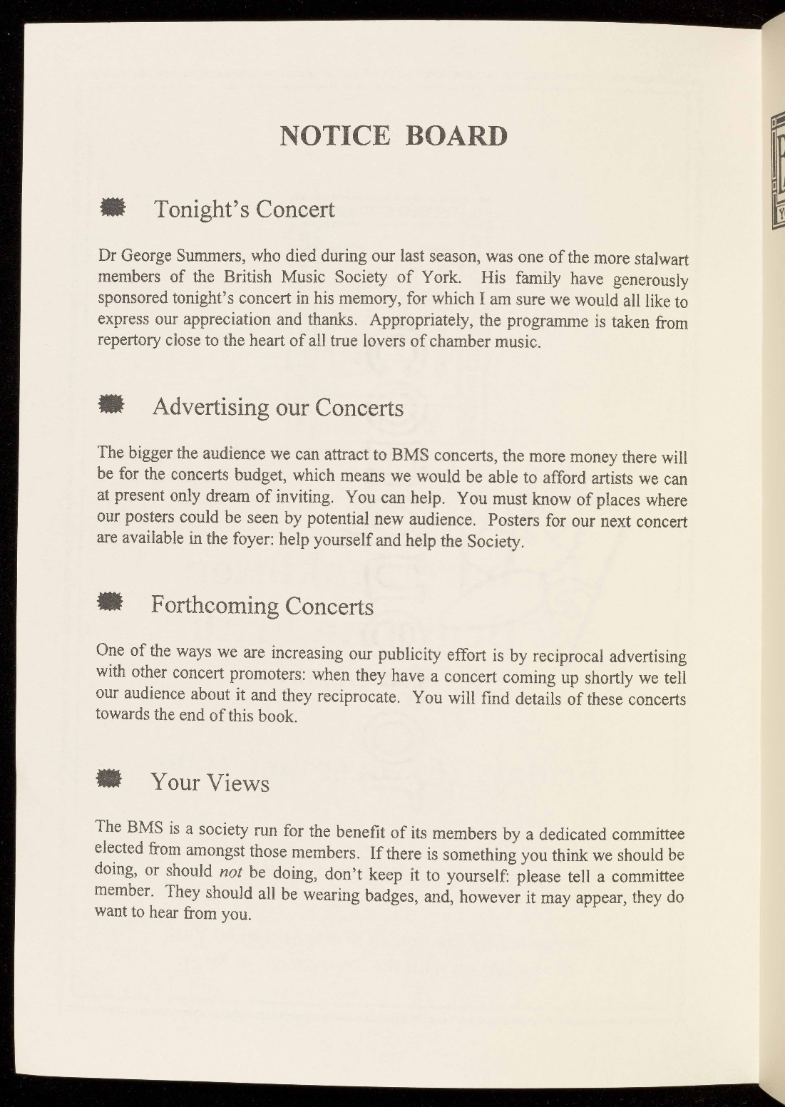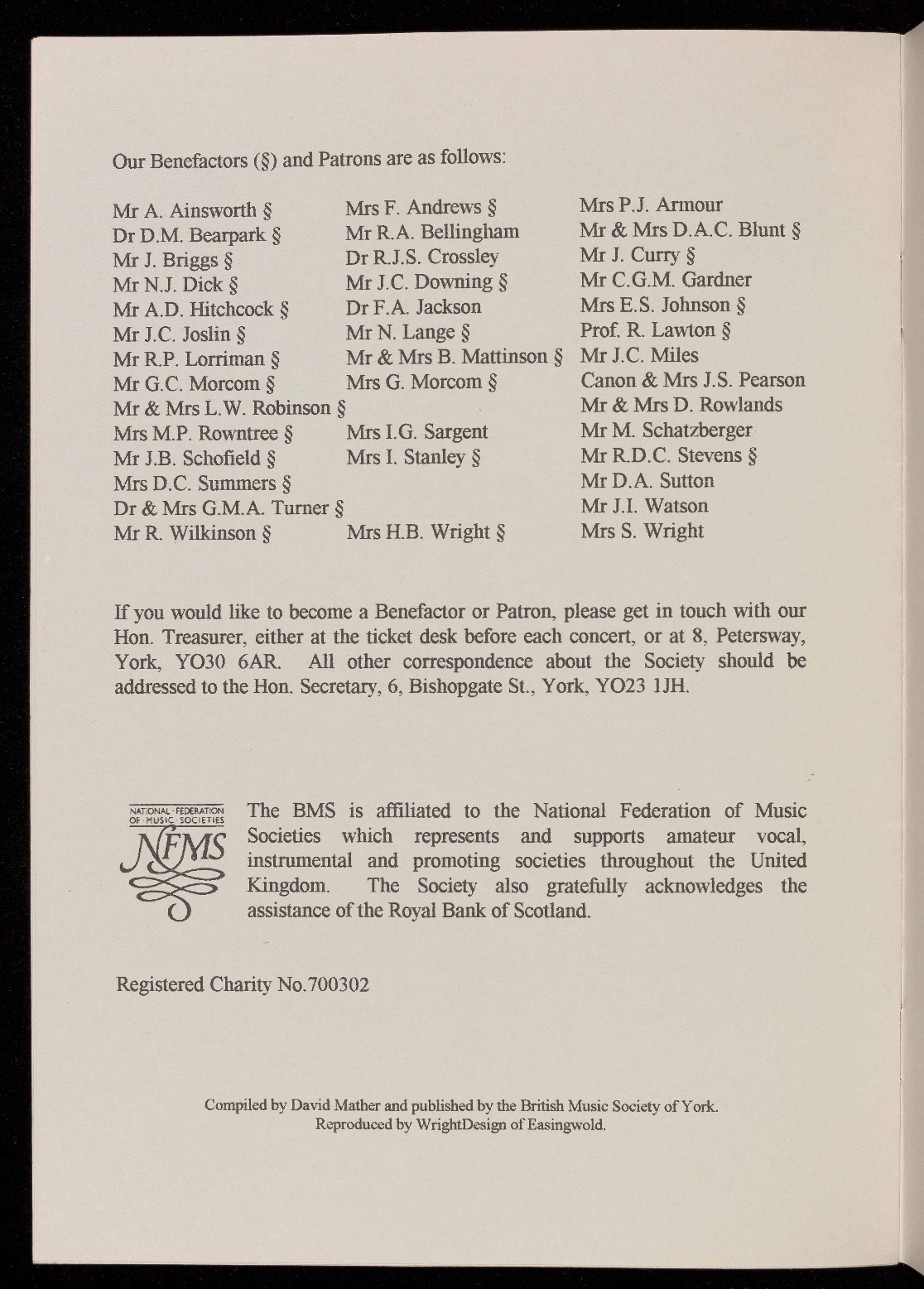 concert are available in the foyer: help yourself and help the Society.