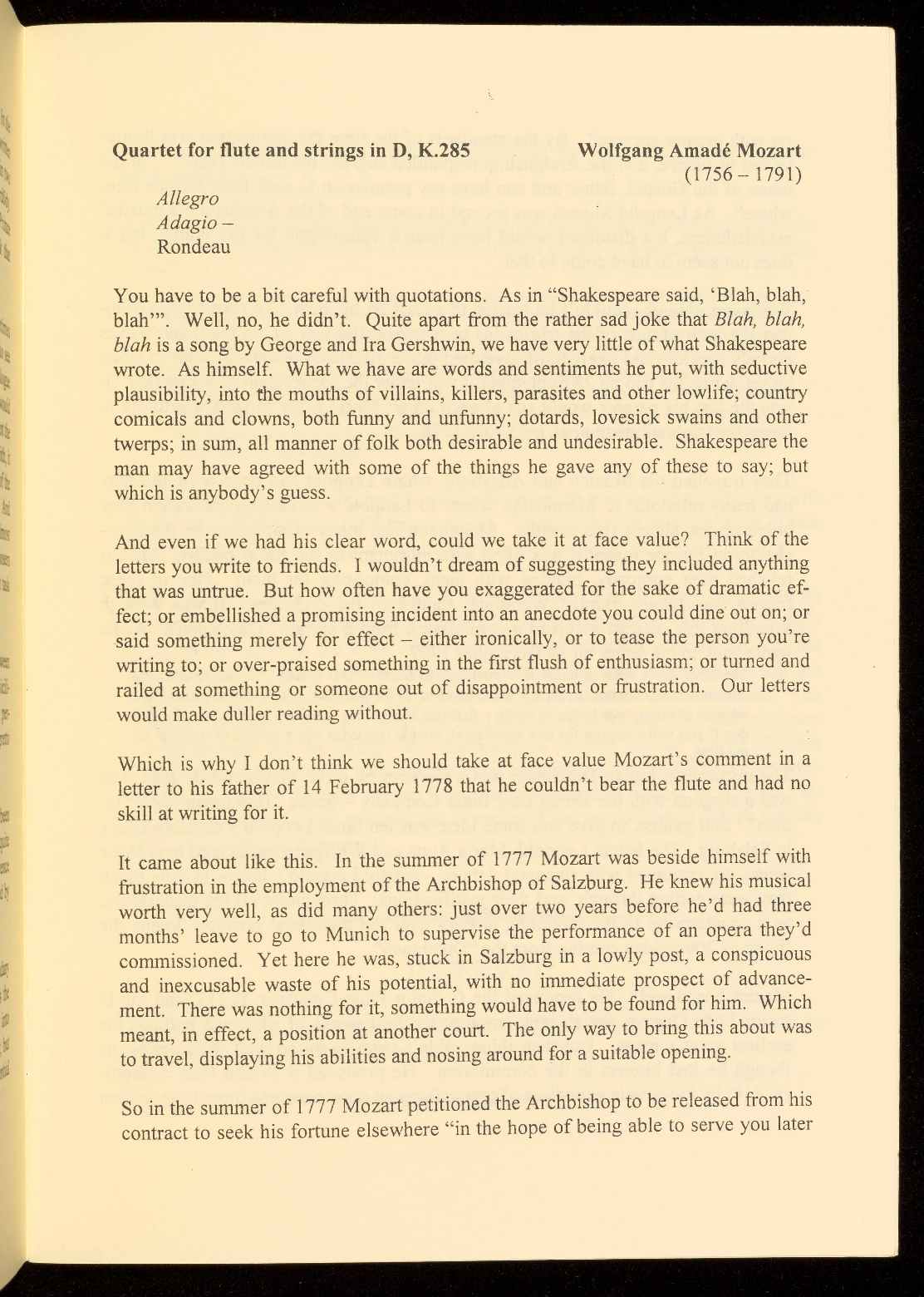 wind-playing friends possessed the music of the Mozart, had played it with him and