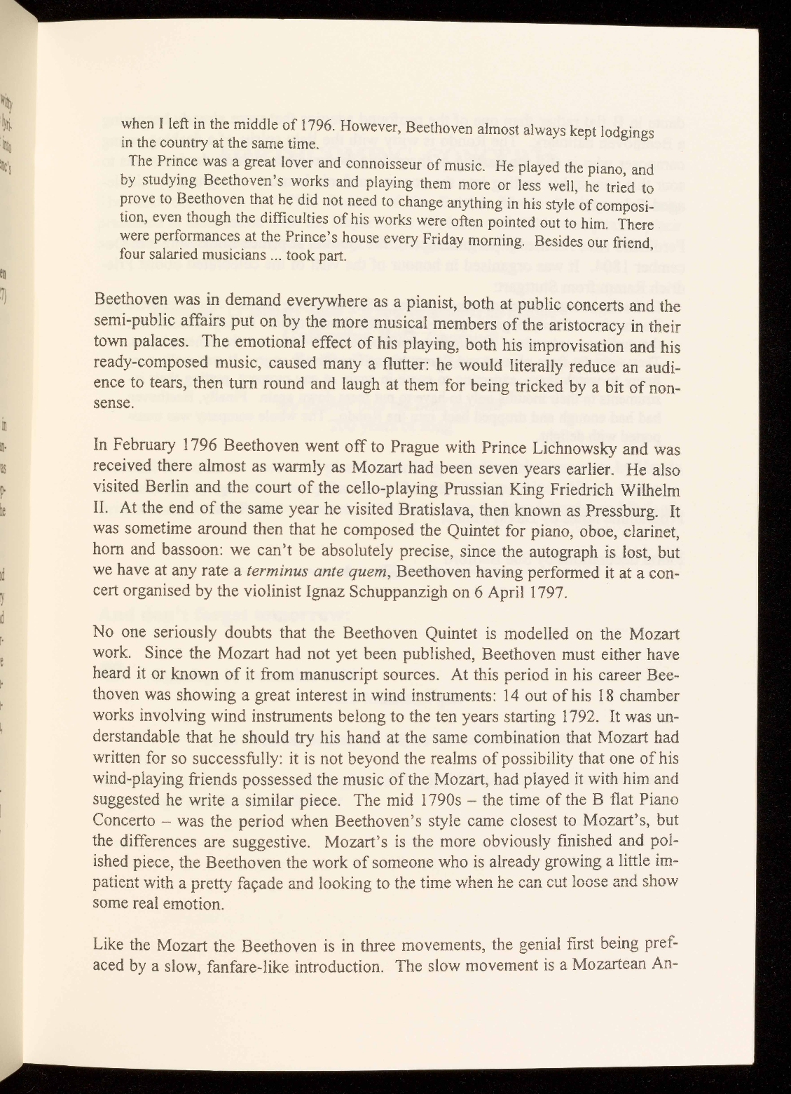 In February 1796 Beethoven went off to Prague with Prince Lichnowsky and was