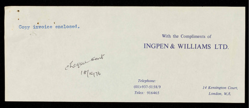 We, INGPEN & WILLIAMS LIMITED, confirm the engagement of