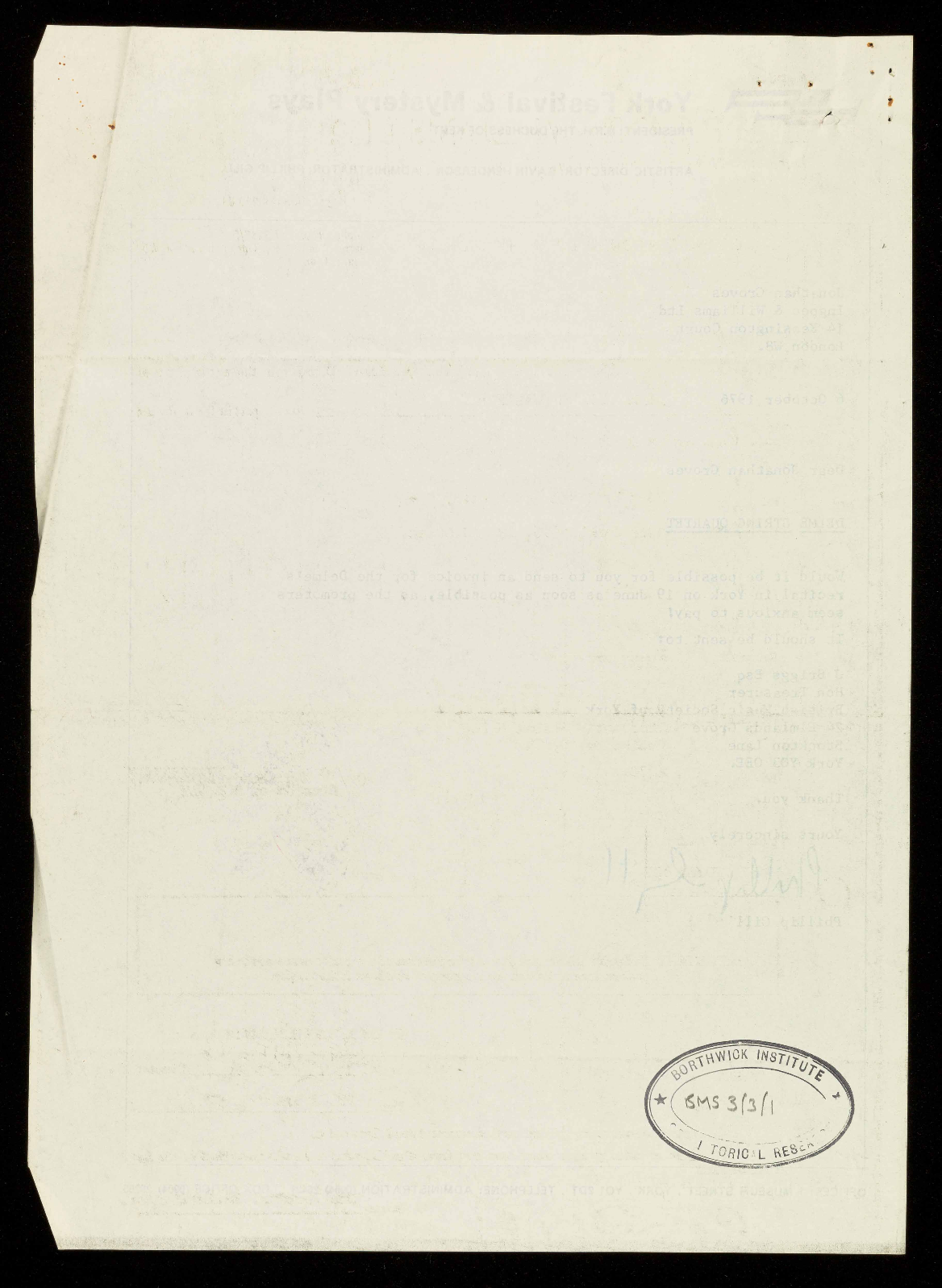 OFFICES: 1 MUSEUM STREET. YORK. YO1 2DT, TELEPHONE: ADMINISTRATION (0904) 26421. BOX OFFICE (0904) 29265