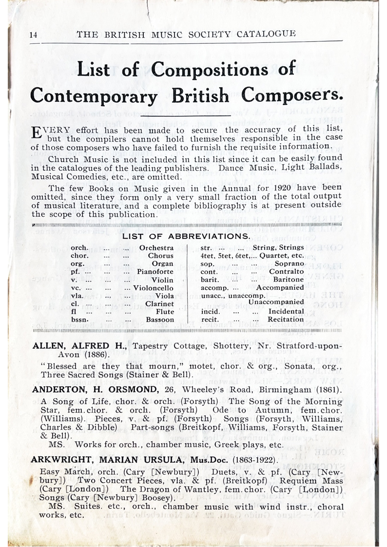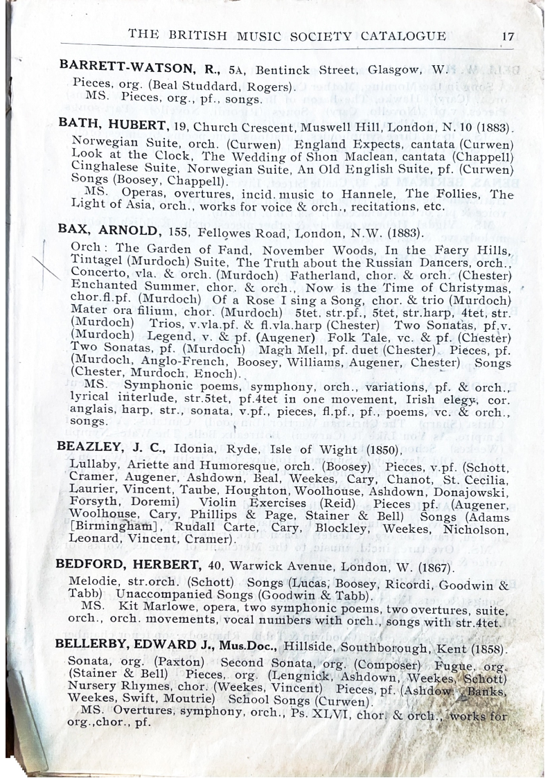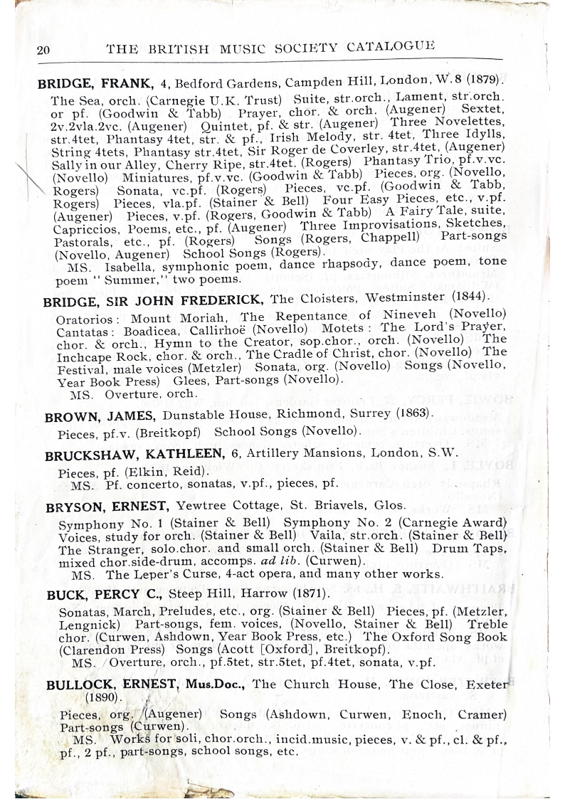 THE BRITISH MUSIC SOCIETY CATALOGUE
