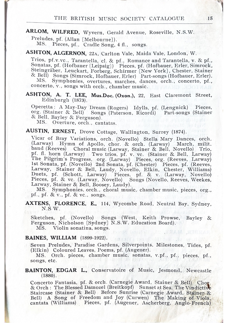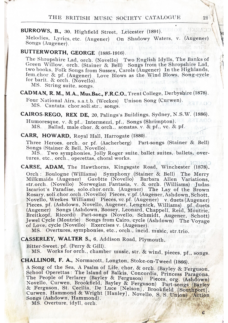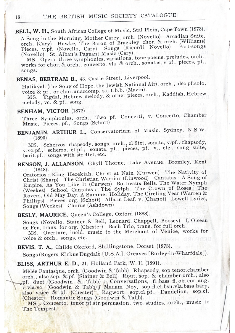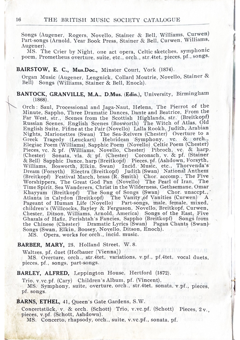 THE BRITISH MUSIC SOCIETY CATALOGUE