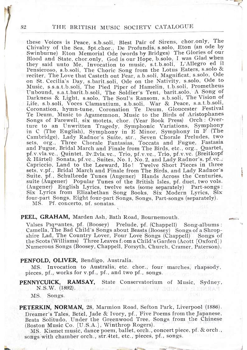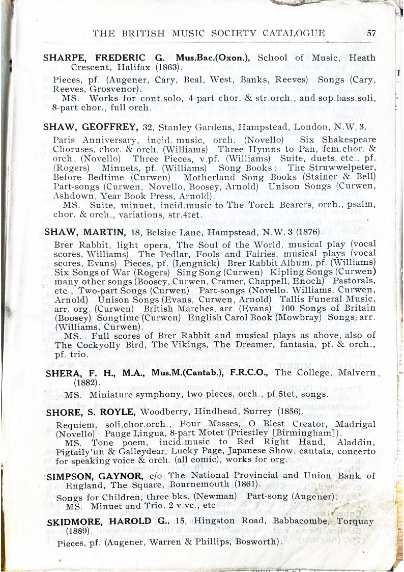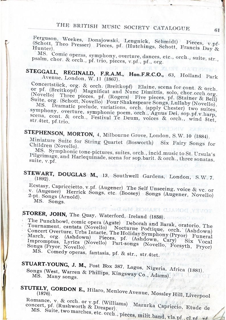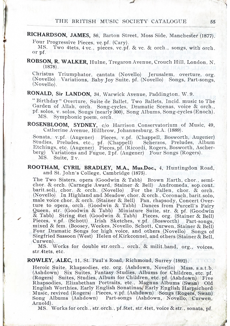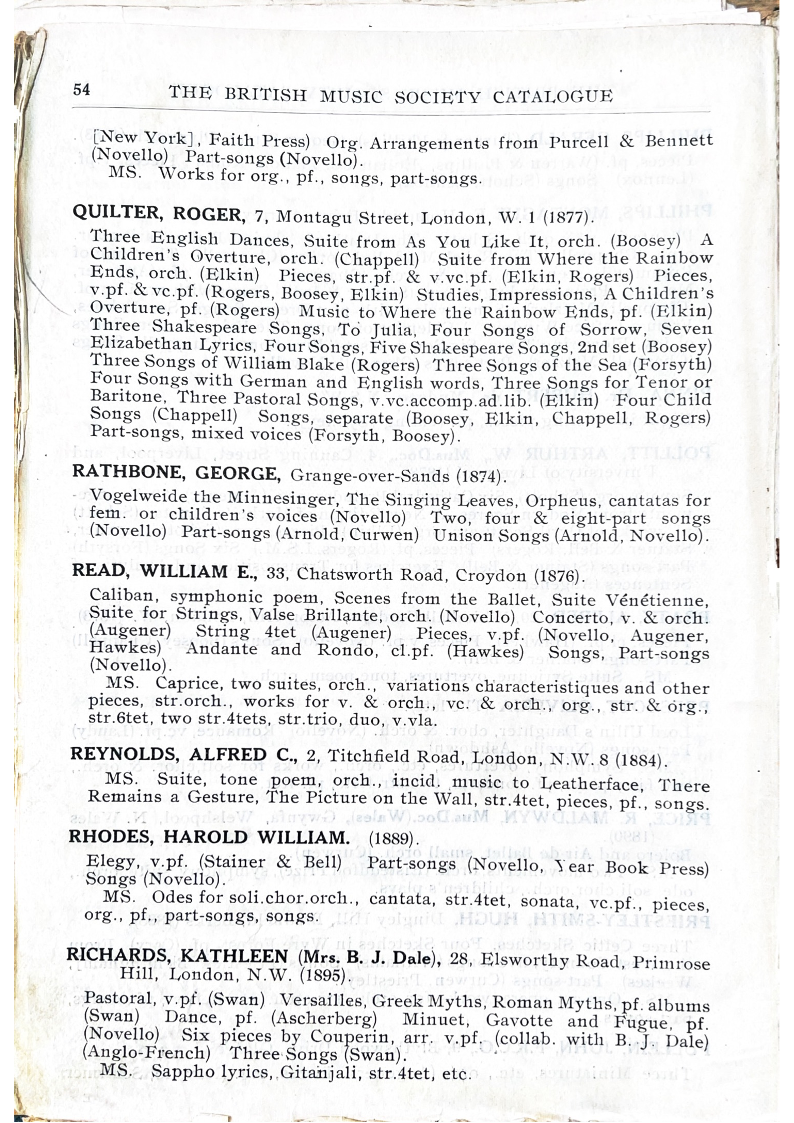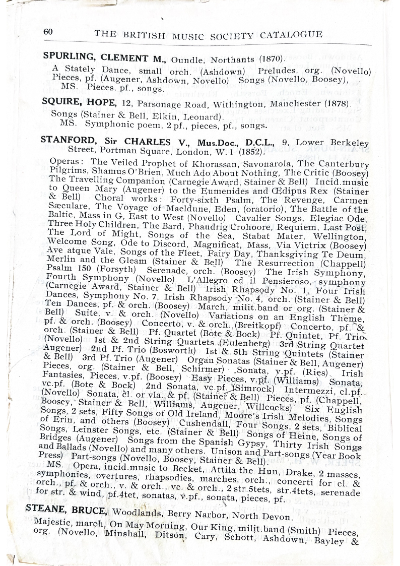 THE BRITISH MUSIC SOCIETY CATALOGUE