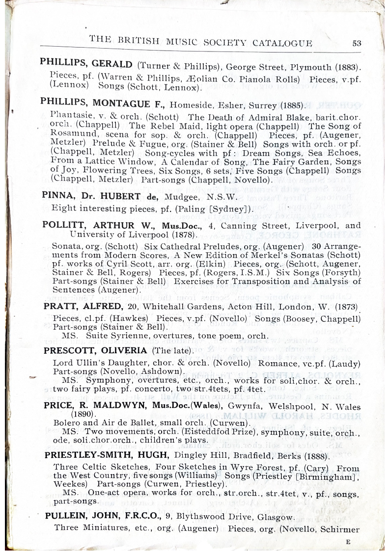 Valses Piquantes, pf. (Boosey) Prelude, pf. (Chappell) Song-albums: