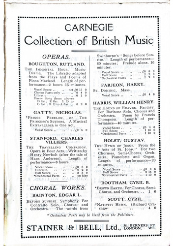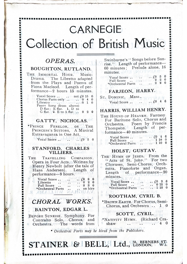 (Boosey) The Pied Piper (Novello) The Fair Maids of February (Williams)