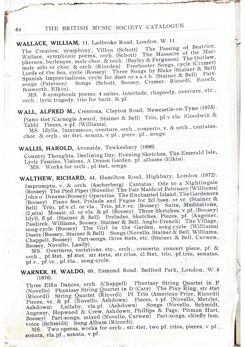 WALLACE, WILLIAM, 11, Ladbroke Road, London, W. 11.