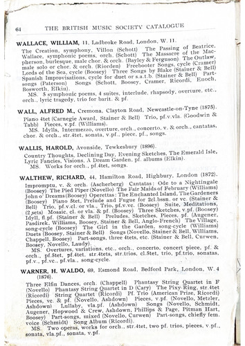 WARNER, H. WALDO, 69, Esmond Road, Bedford Park, London, W. 4