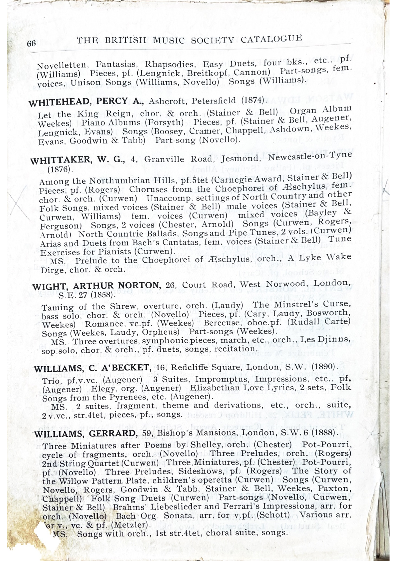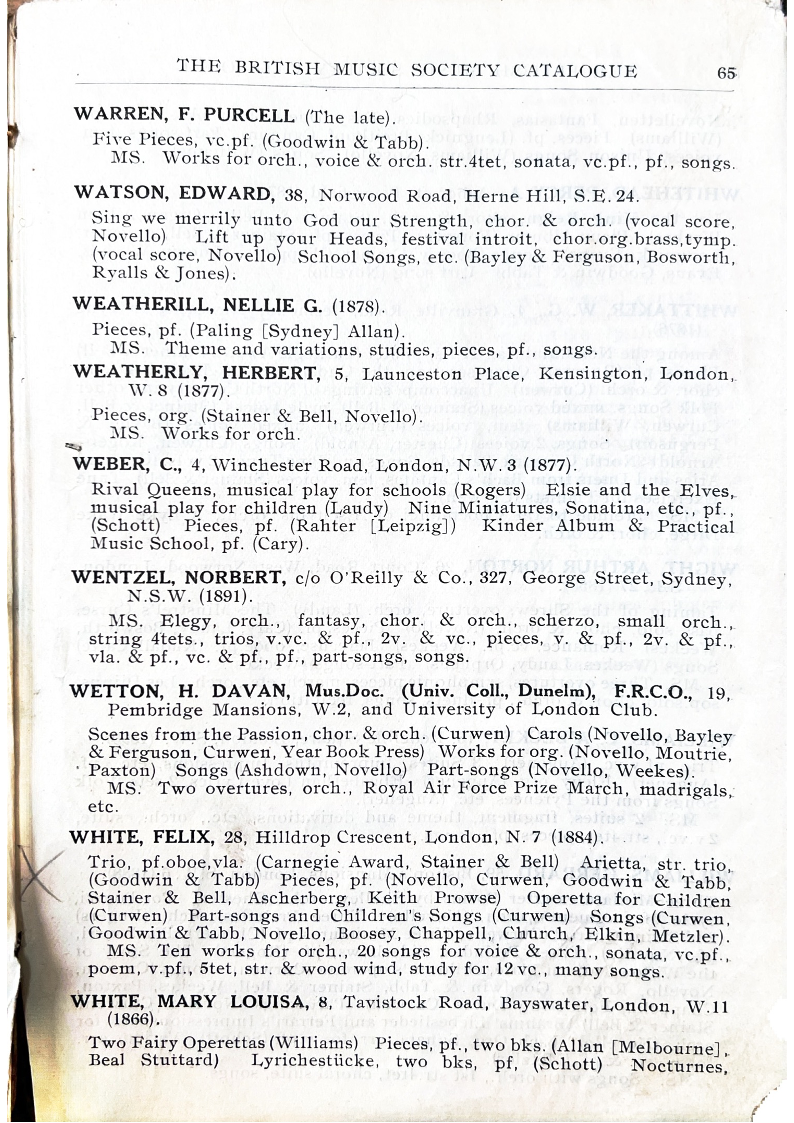 THE BRITISH MUSIC SOCIETY CATALOGUE