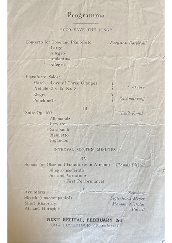 NEXT RECITAL, FEBRUARY 3rd