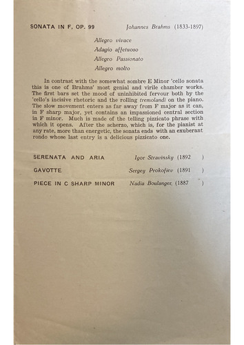In contrast with the somewhat sombre E Minor 'cello sonata