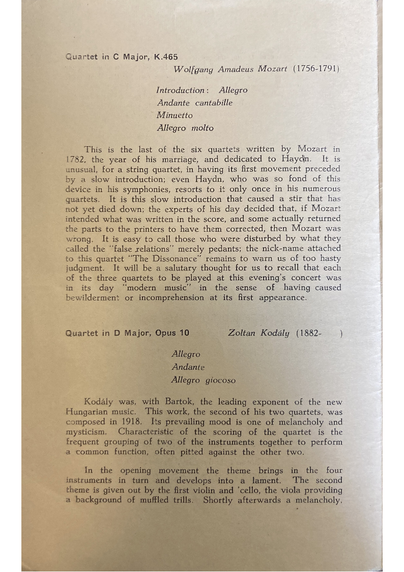 to this quartet "The Dissonance" remains to warn us of too hasty