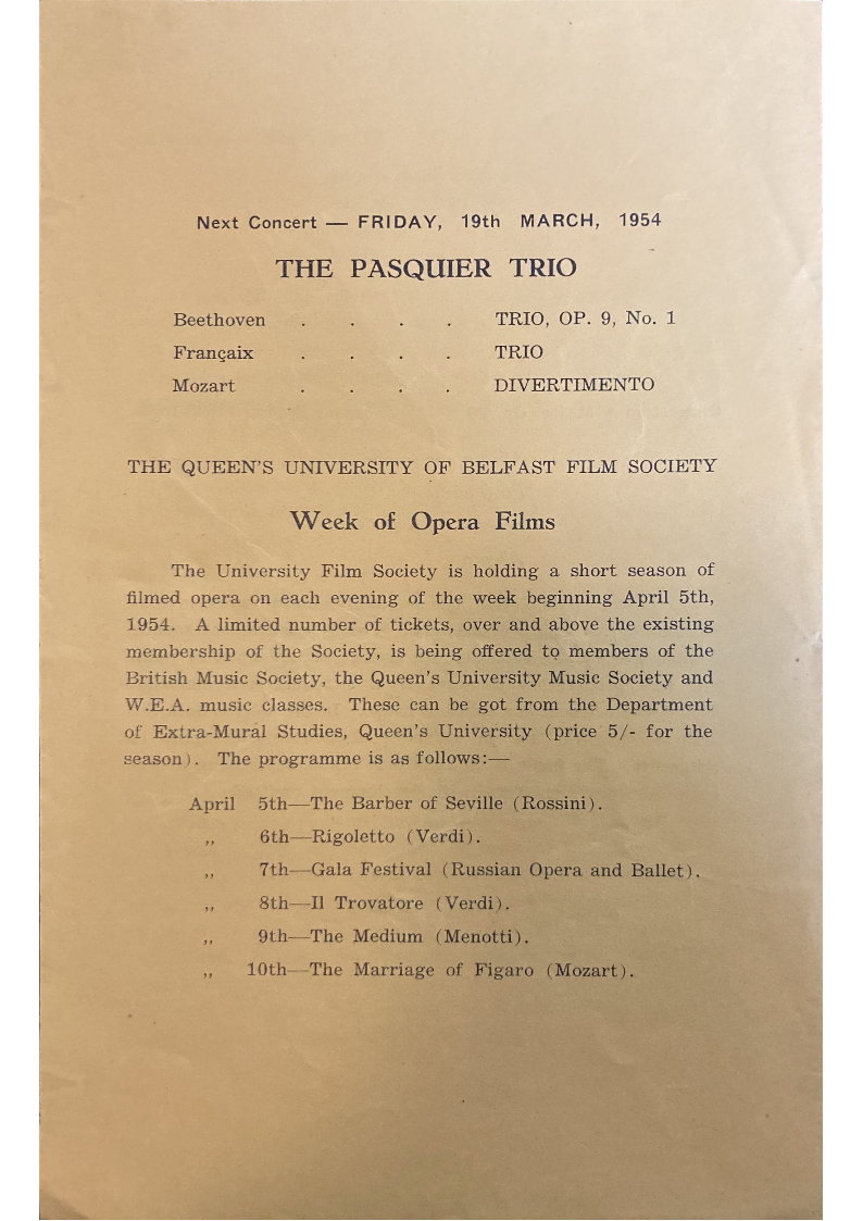 THE QUEEN'S UNIVERSITY OF BELFAST FILM SOCIETY