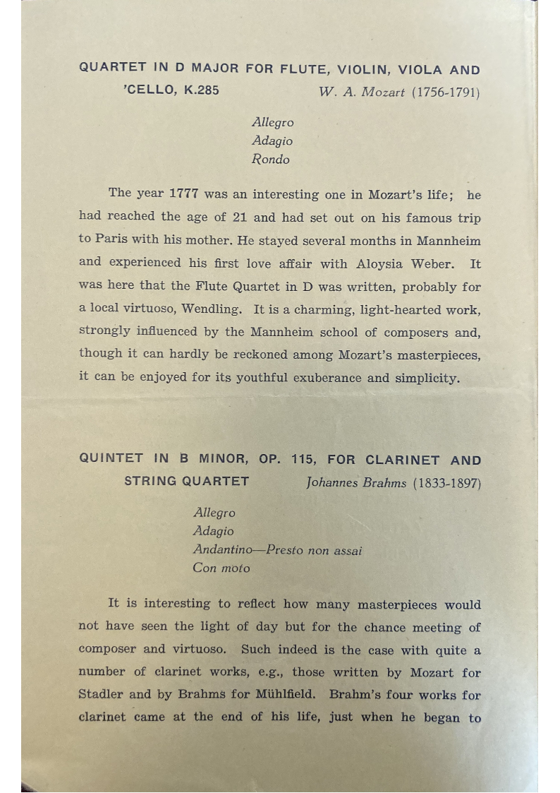 Stadler and by Brahms for Mühlfield. Brahm's four works for