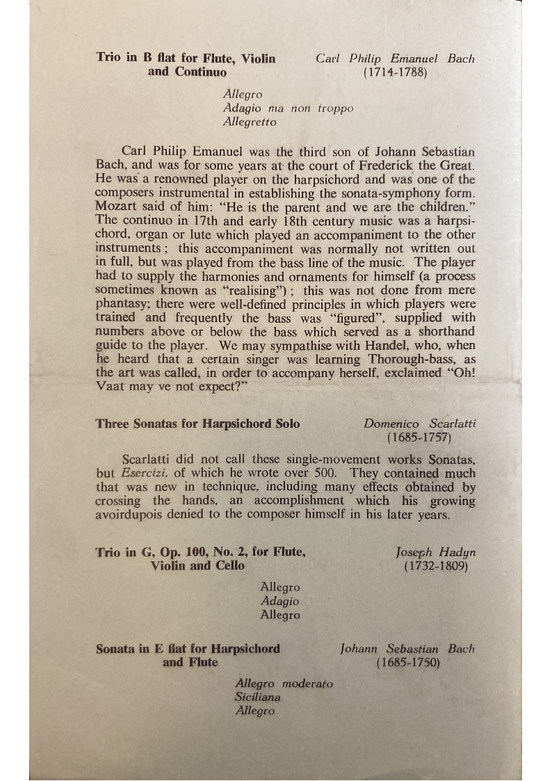 Trio in G for Flute, Violin and Continuo Johann Sebastian Bach