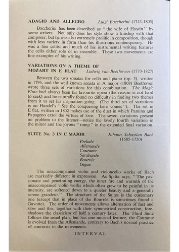 the cello either solo or in ensemble. These two movements are