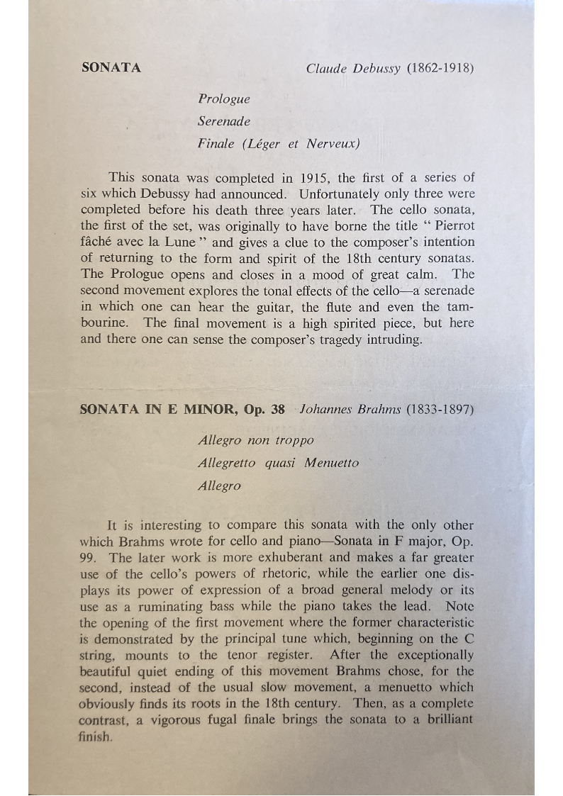 SONATA IN E MINOR, Op. 38 Johannes Brahms (1833-1897)