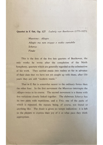 Quartet in E flat, Op. 127 Ludwig van Beethoven (1770-1827)