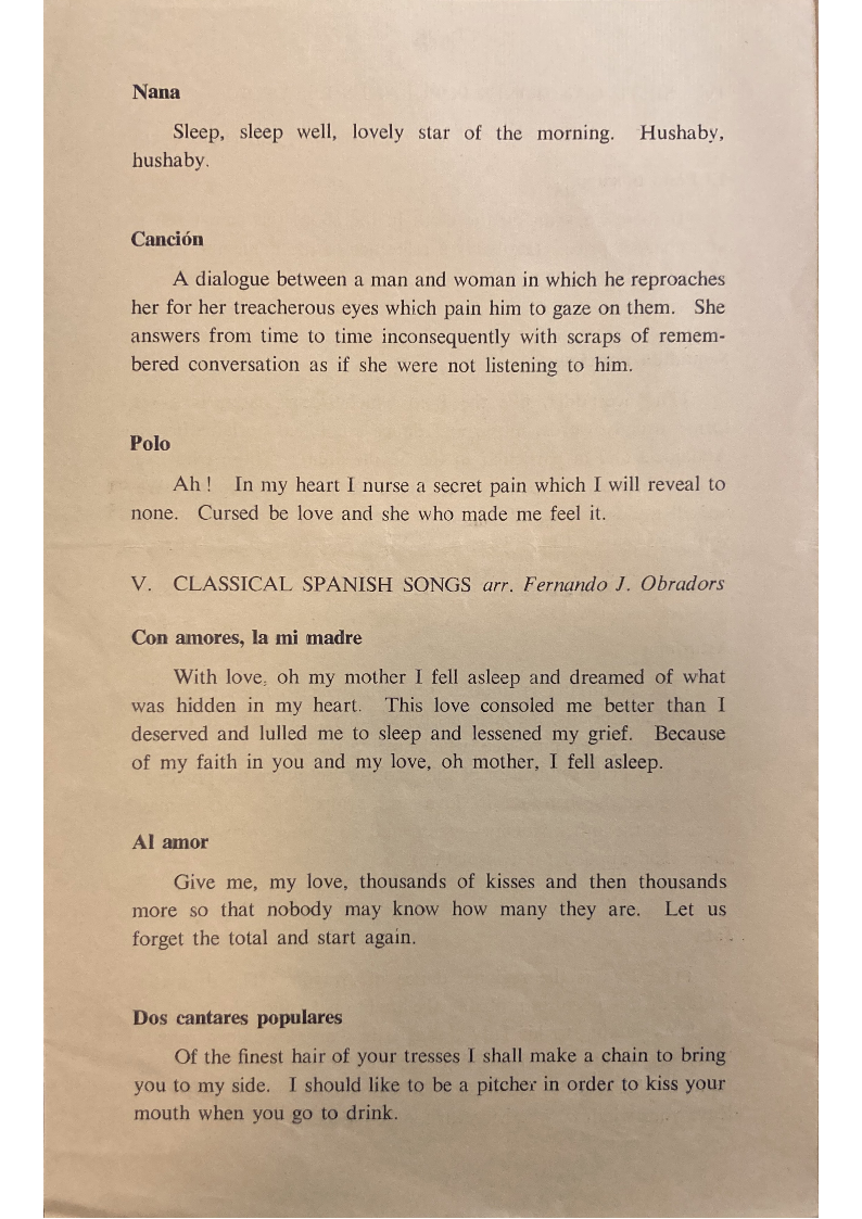 V. CLASSICAL SPANISH SONGS arr. Fernando J. Obradors
