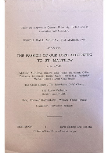 WHITLA HALL, MONDAY, 23rd MARCH, 1959