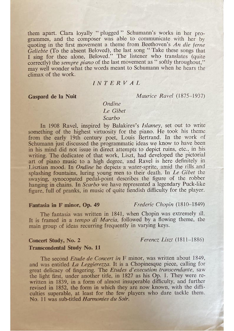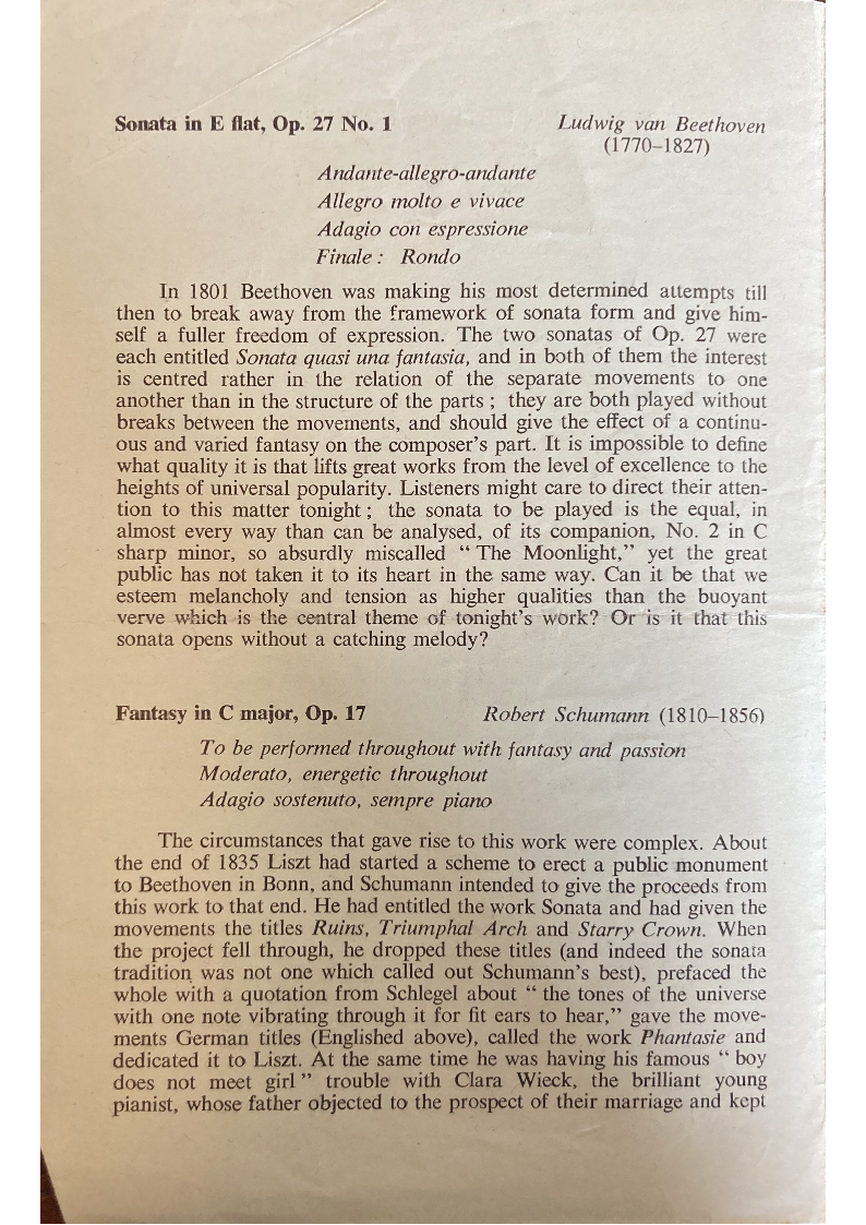 Schumann just discussed the programmatic ideas we know to have been