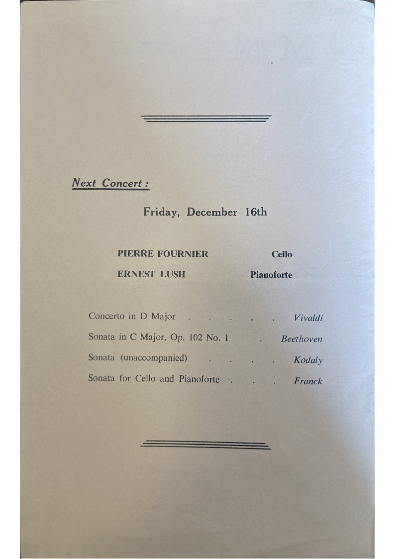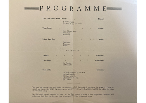 understand that there has been no time to prepare the usual programme notes.