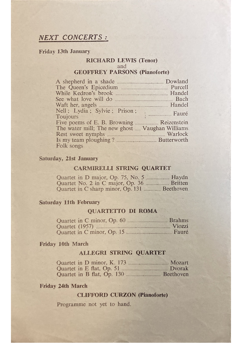 Programme not yet to hand.