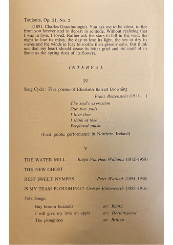 Song Cycle: Five poems of Elizabeth Barrett Browning