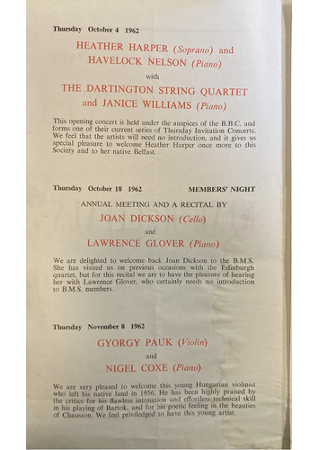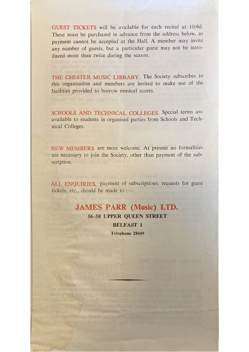 GUEST TICKETS will be available for each recital at 10/6d.