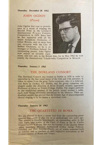The Dowland Consort was formed in Dublin in 1958 in order to