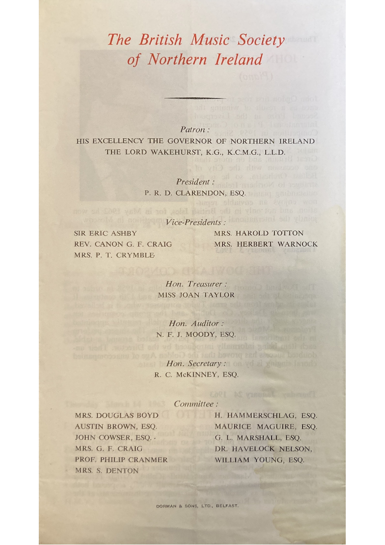 Professor of Music at Trinity College, Dublin. The singers perform