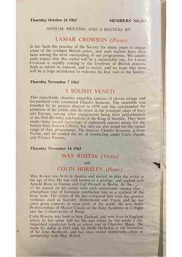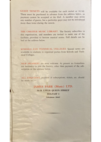 GUEST TICKETS will be available for each recital at 10/6d.