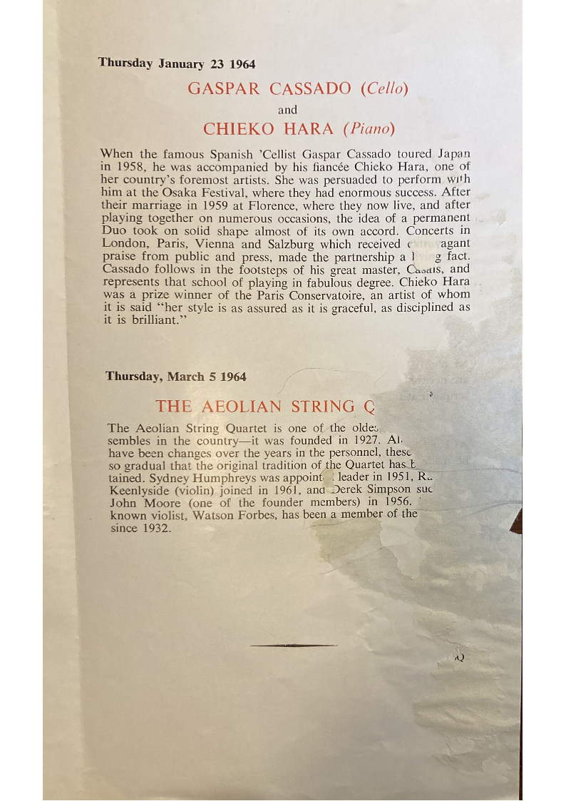 When the famous Spanish 'Cellist Gaspar Cassado toured Japan