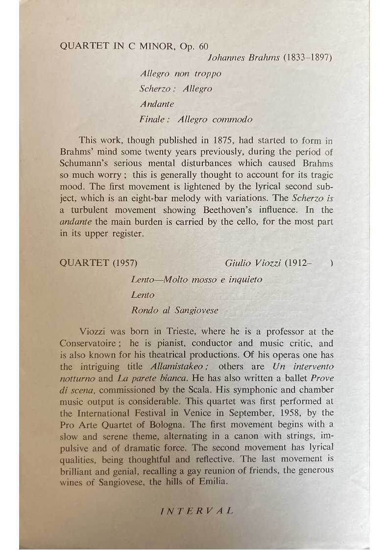 Pro Arte Quartet of Bologna. The first movement begins with a