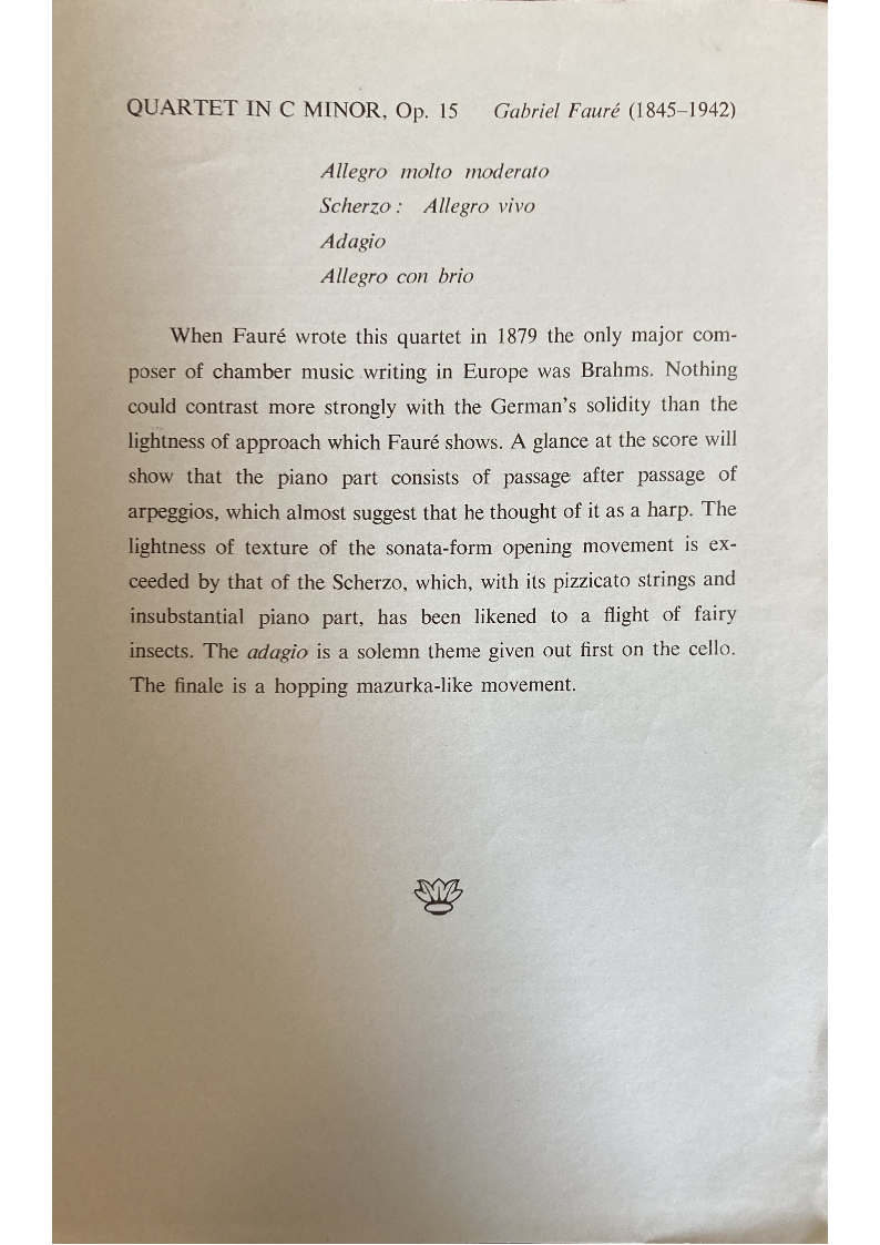 When Fauré wrote this quartet in 1879 the only major com-