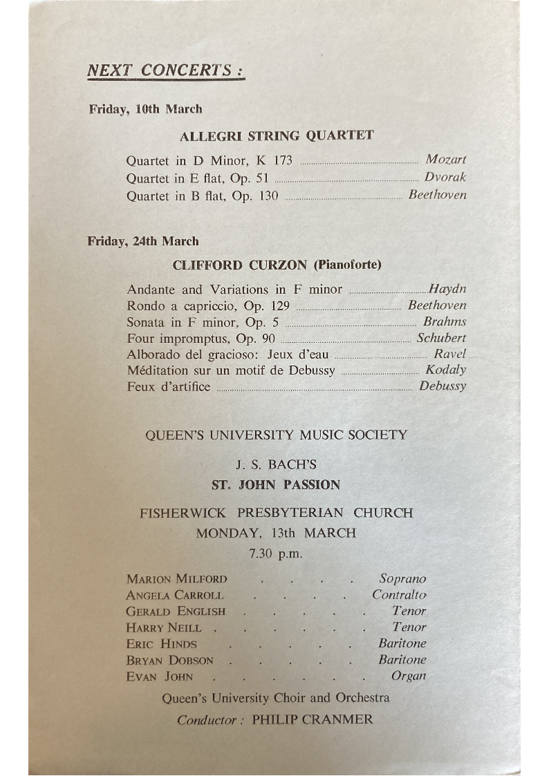 QUEEN'S UNIVERSITY MUSIC SOCIETY