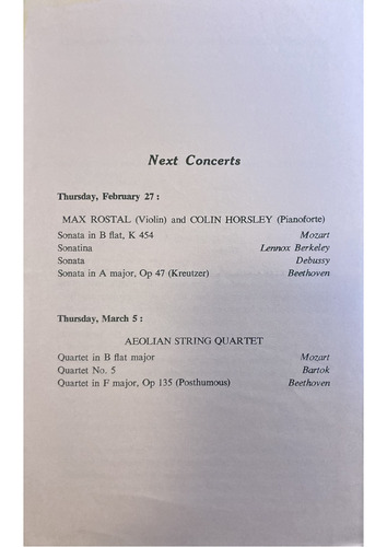 MAX ROSTAL (Violin) and COLIN HORSLEY (Pianoforte)